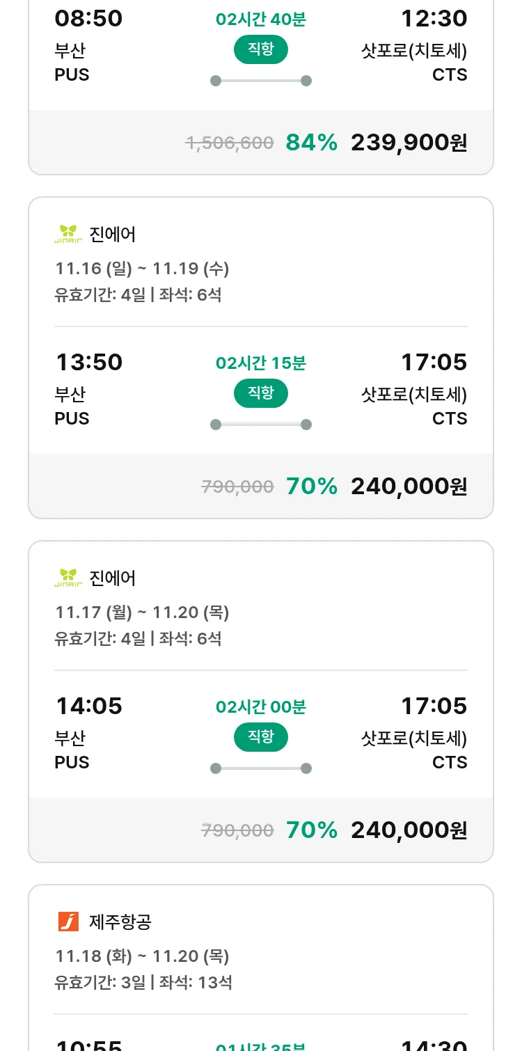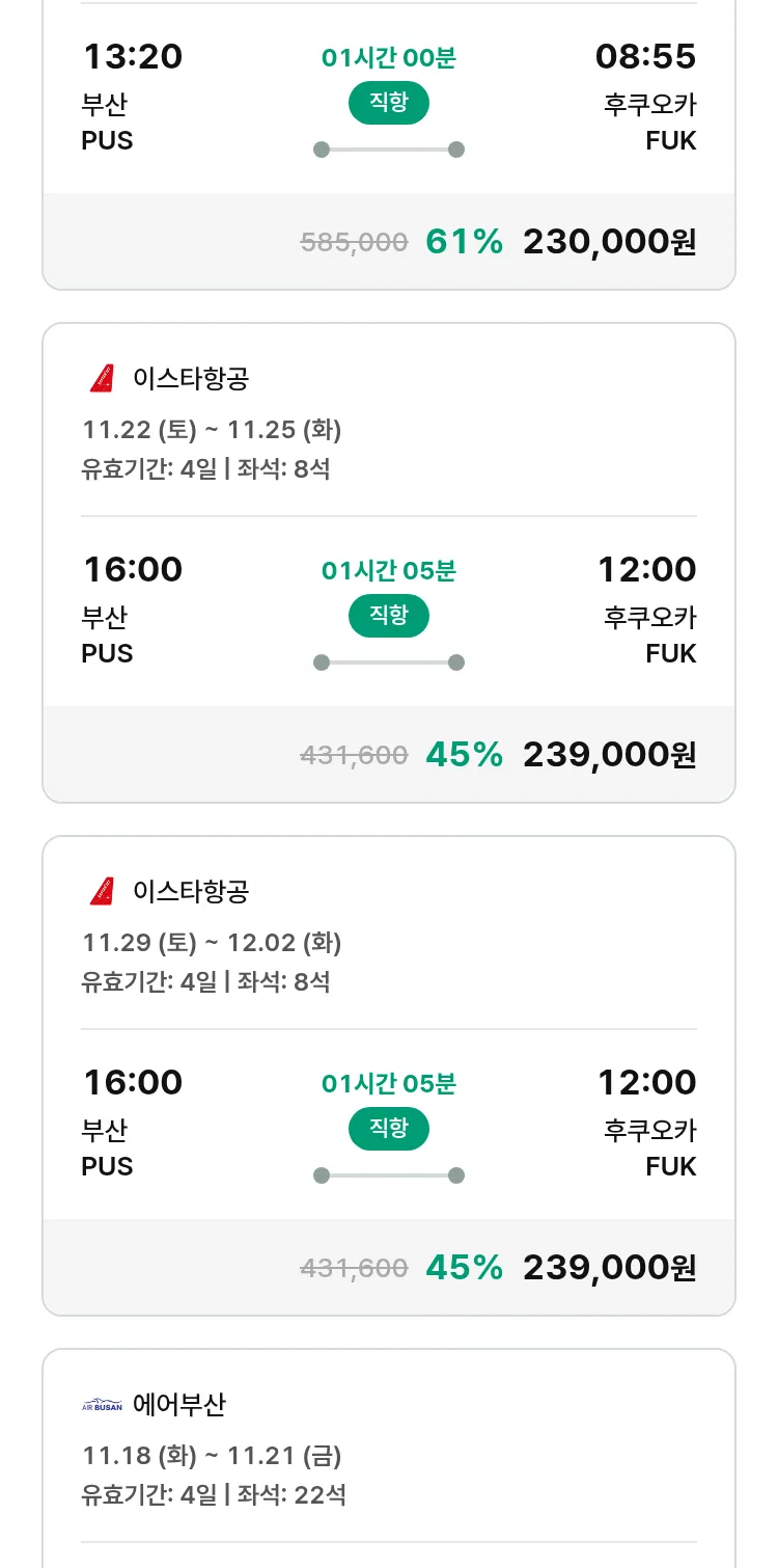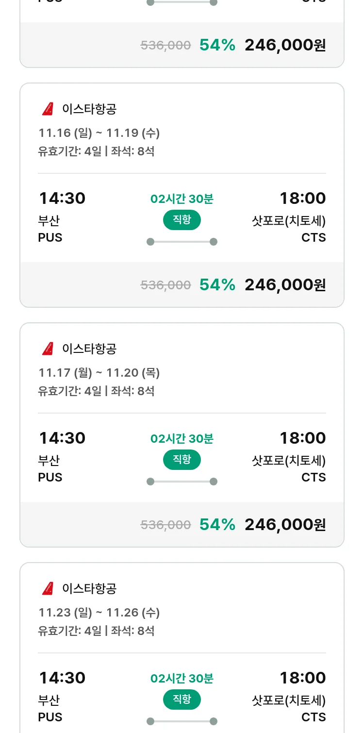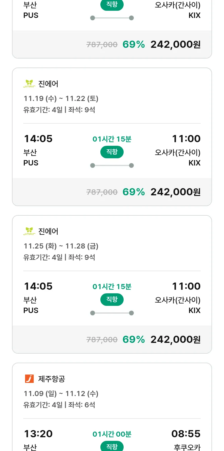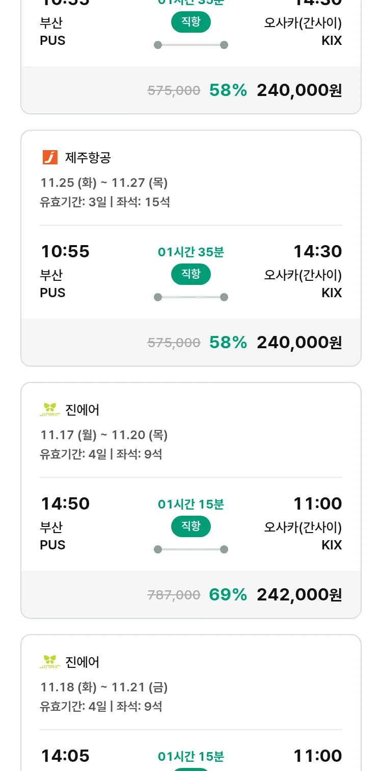 (10월 30일(목)) 땡처리 특가 항공권