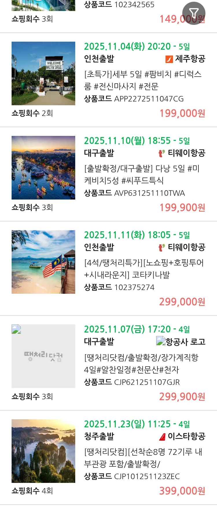 (10월 30일(목)) 땡처리 99.9% 확정 패키지