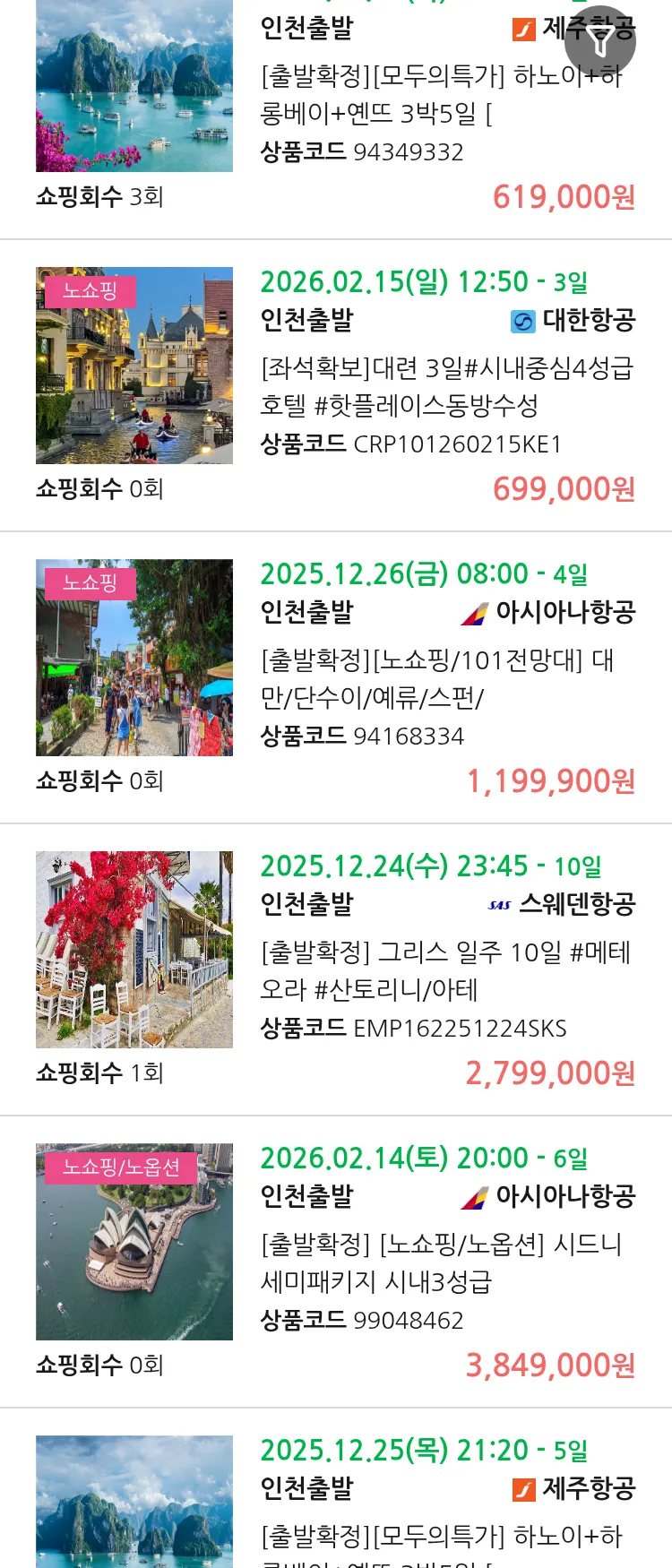 (11월1일(토)) 땡처리 99.9% 확정 패키지