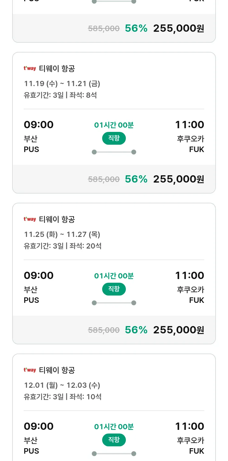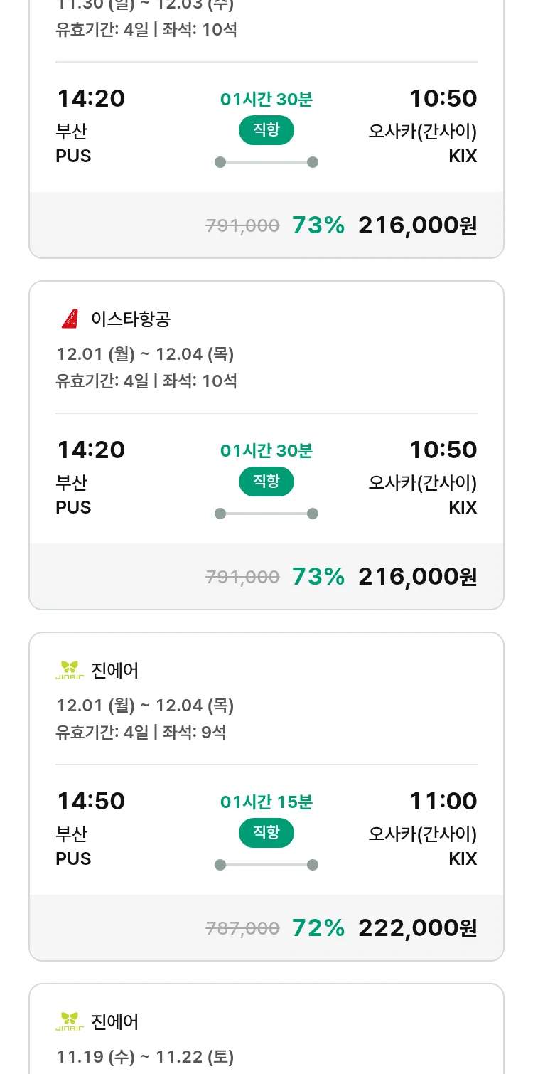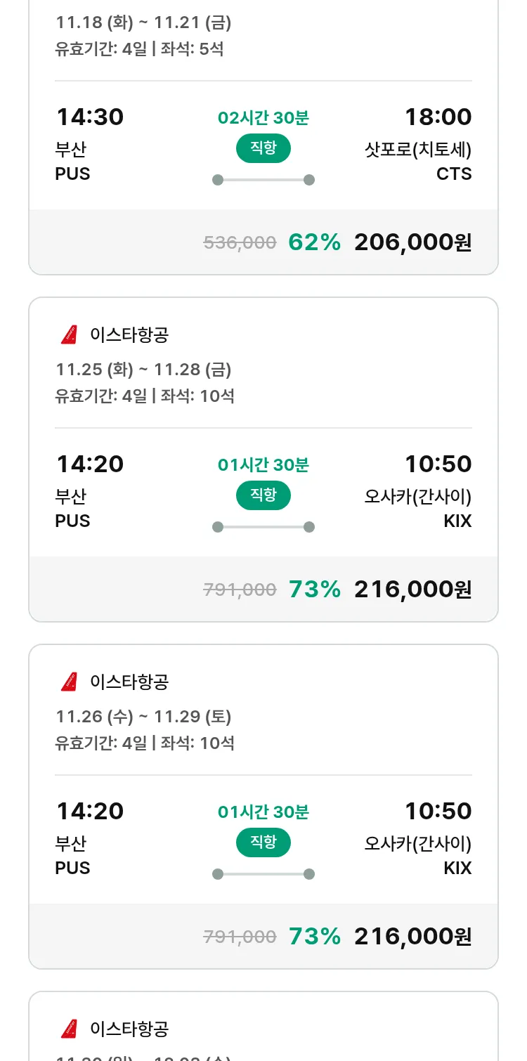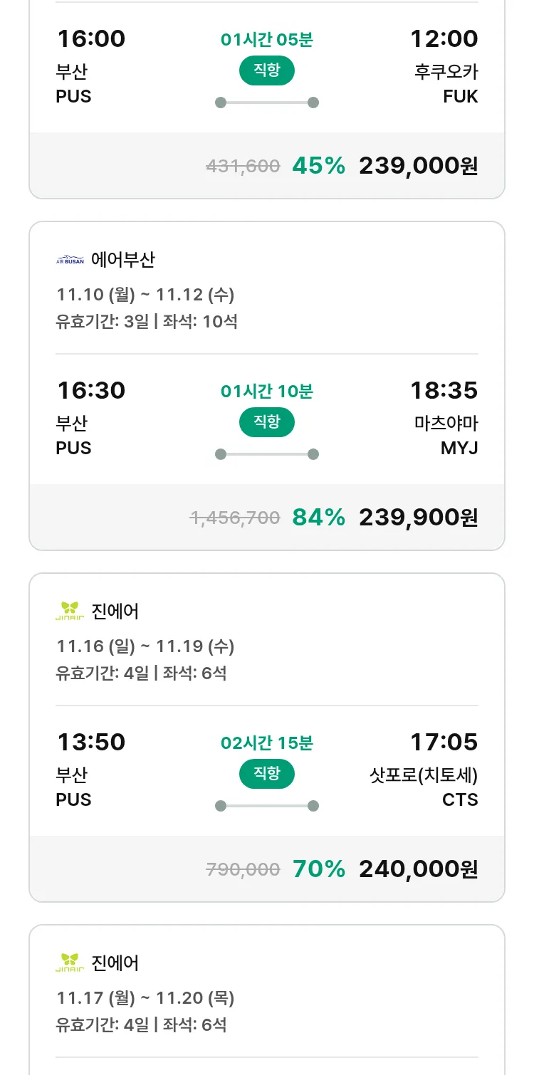 (10월 30일(목)) 땡처리 특가 항공권