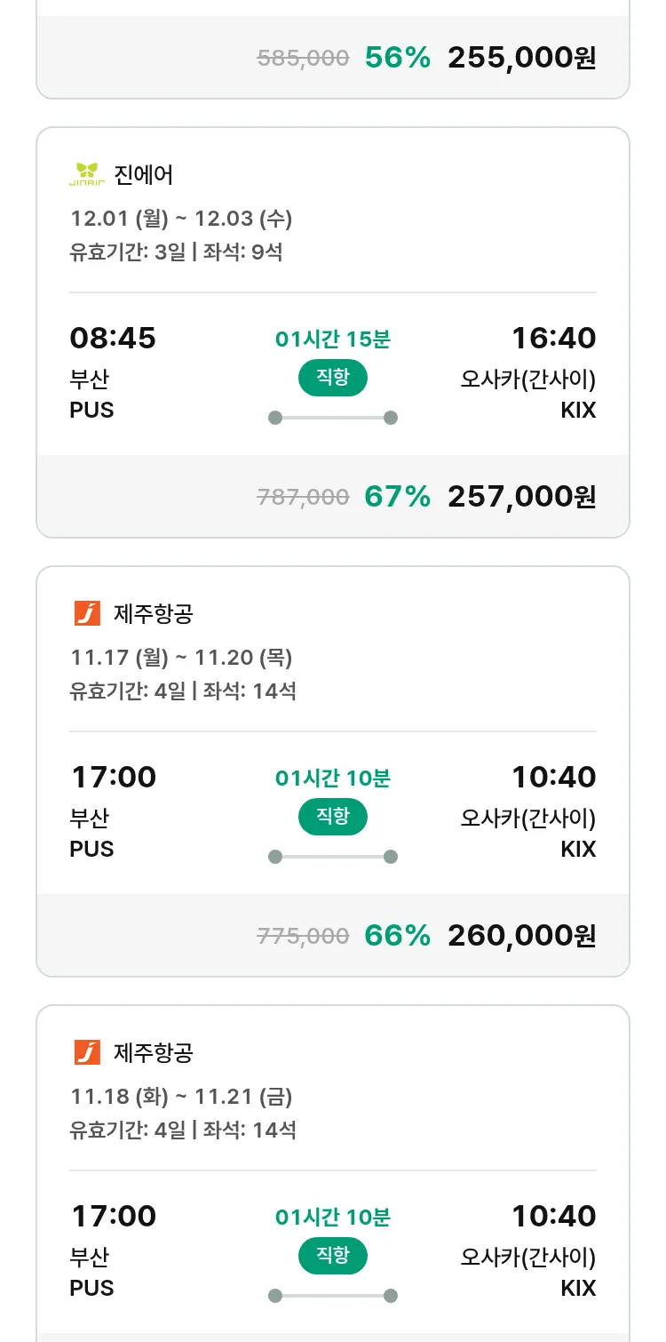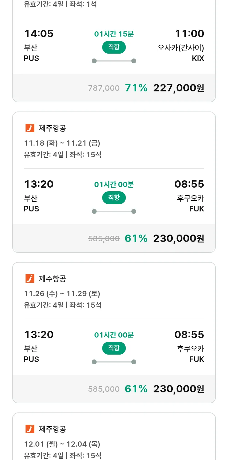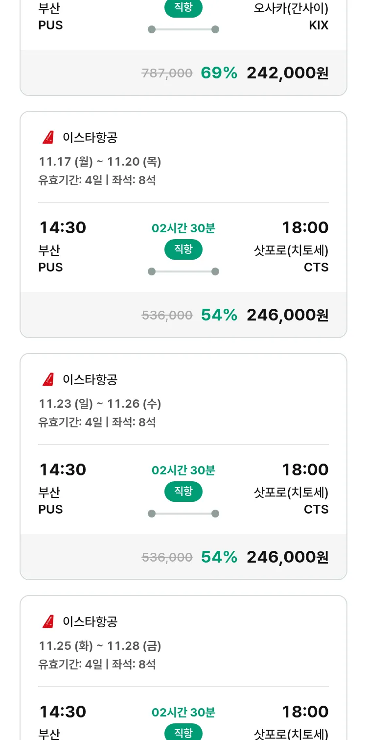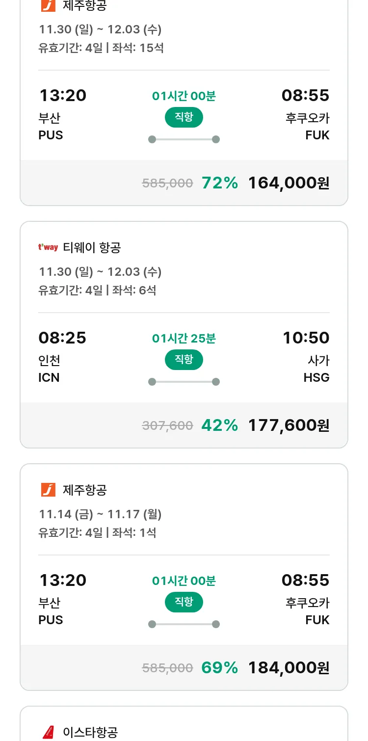 (10월 30일(목)) 땡처리 특가 항공권