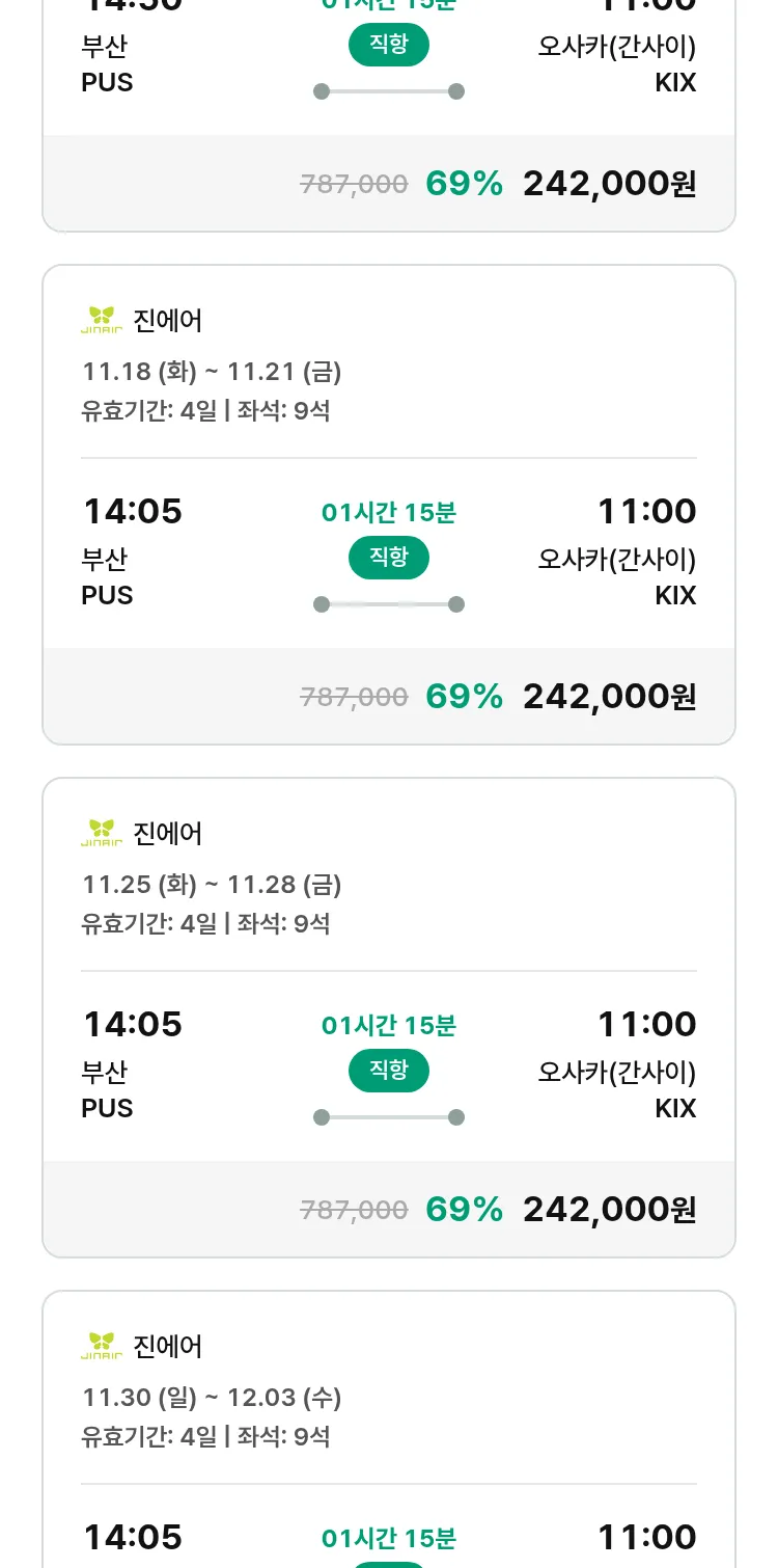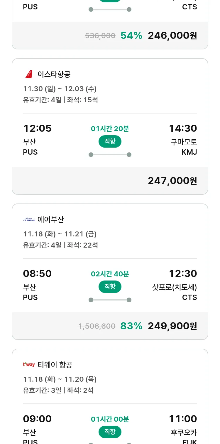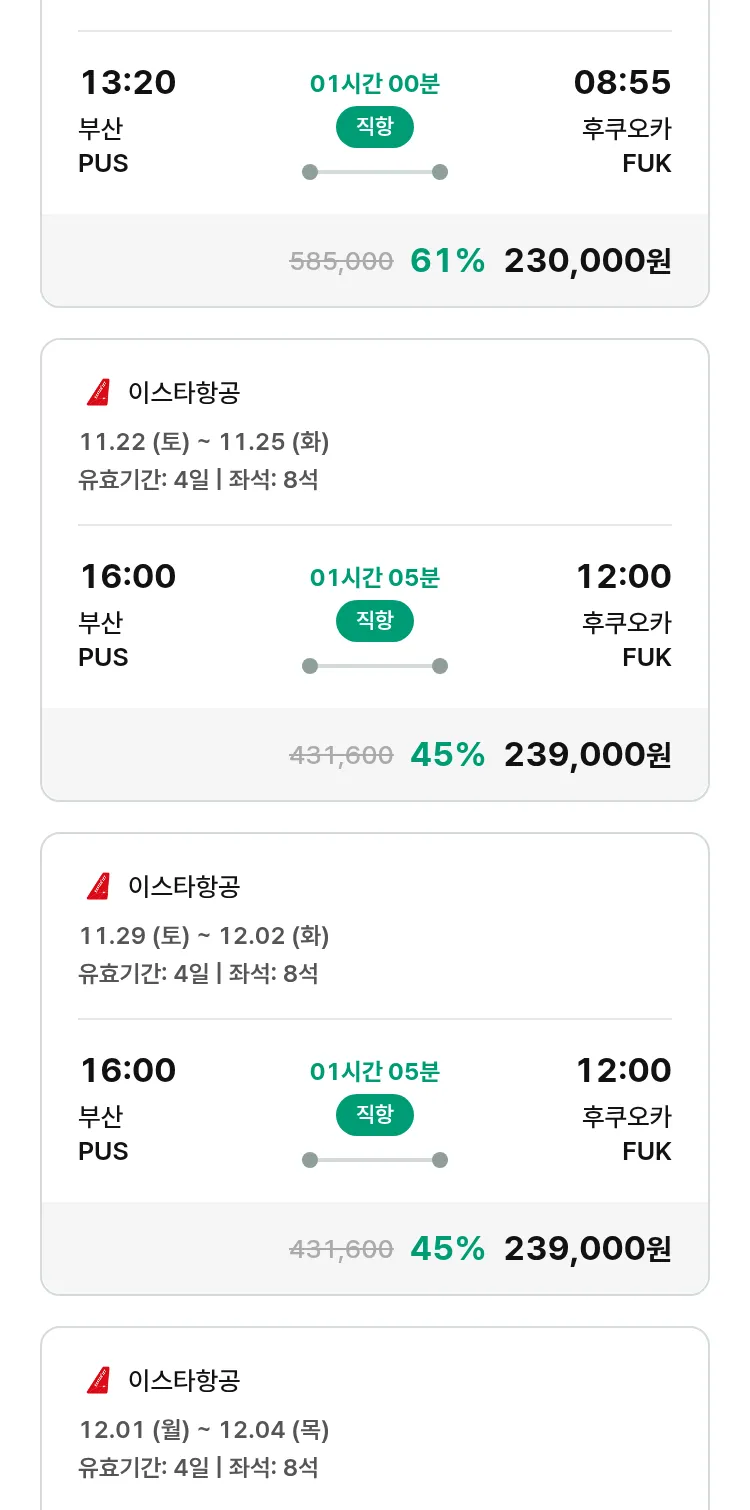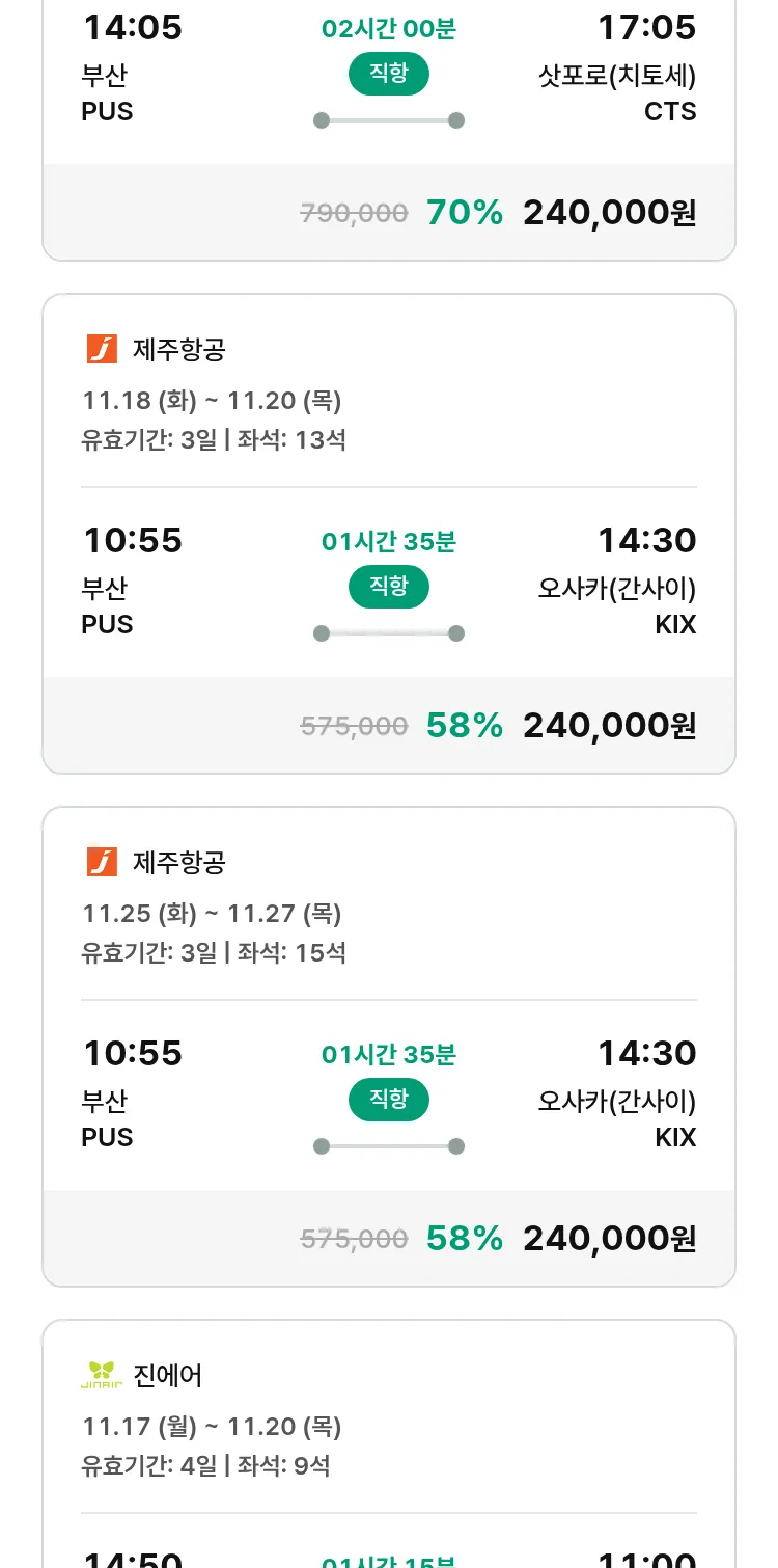 (10월 30일(목)) 땡처리 특가 항공권