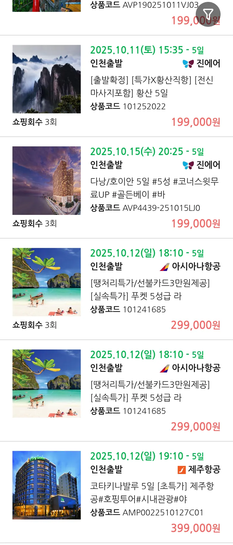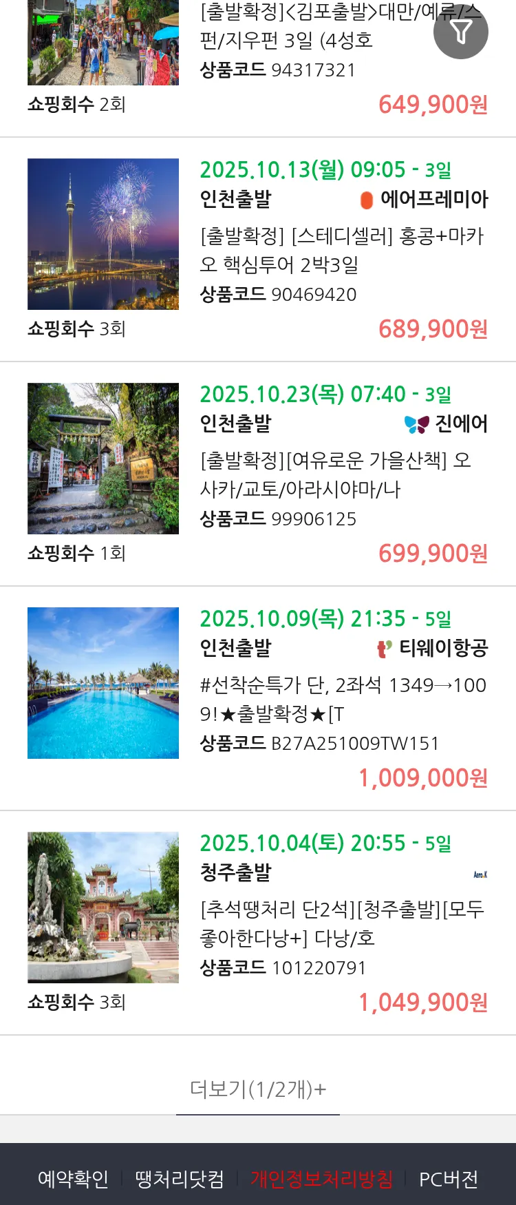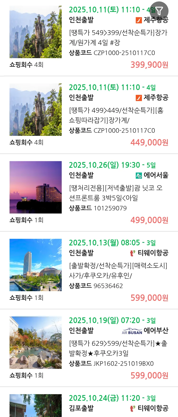 (10월2일(목)) 땡처리 99.9% 확정 패키지