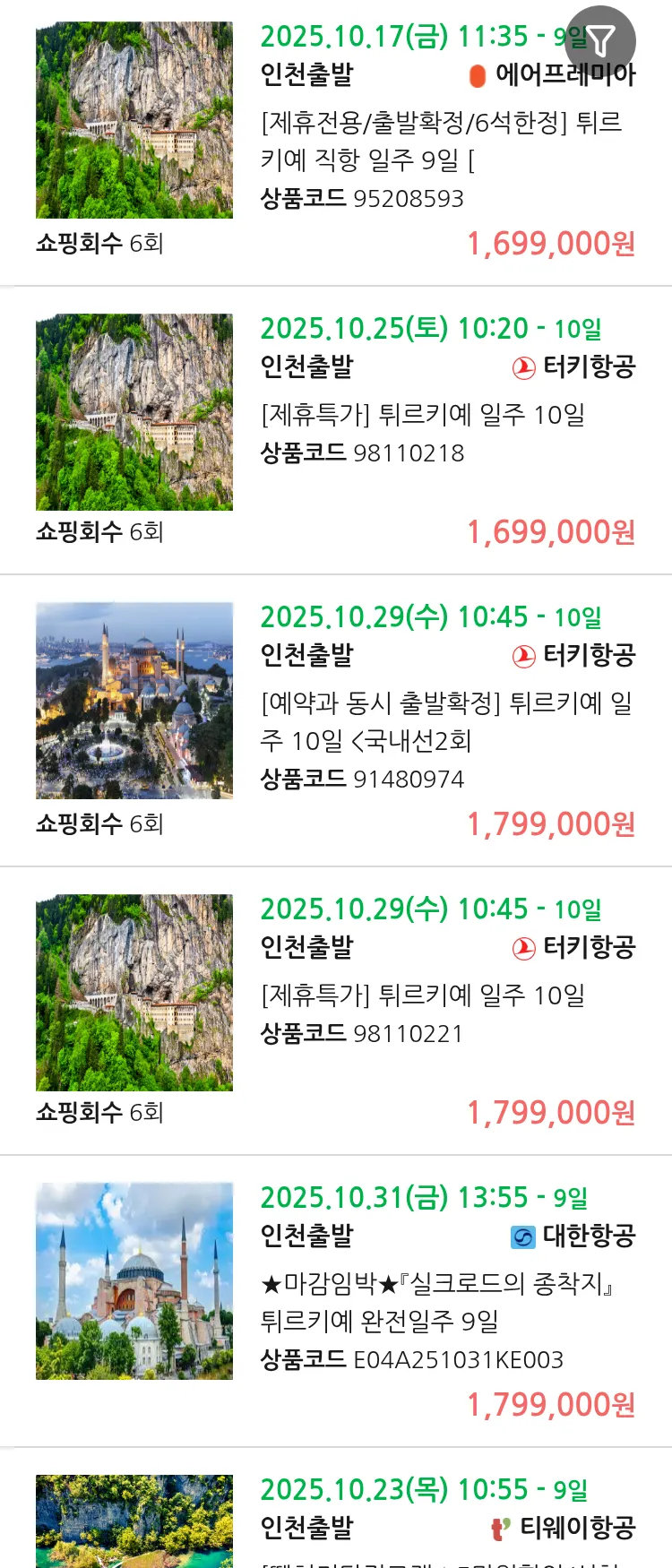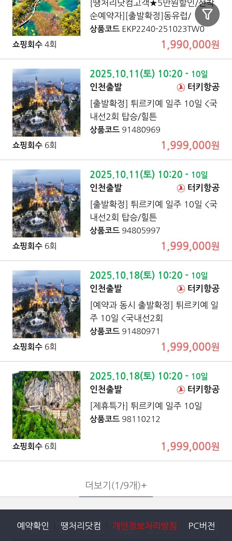 (10월2일(목)) 땡처리 99.9% 확정 패키지