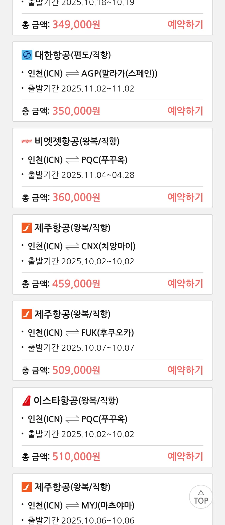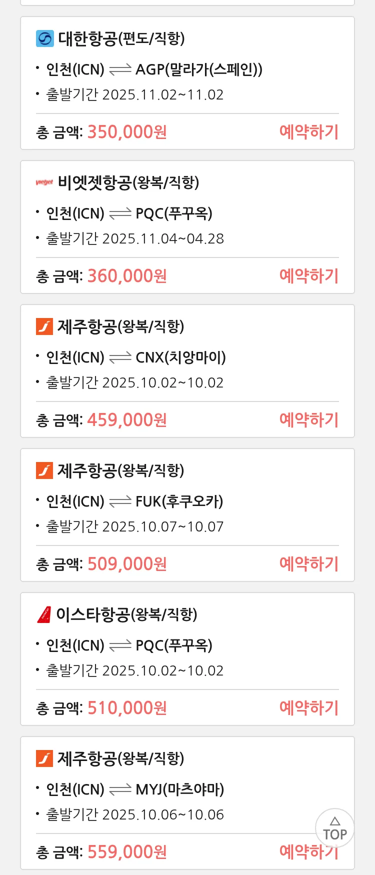(10월2일(목)) 모두투어 동남아 특가 항공권