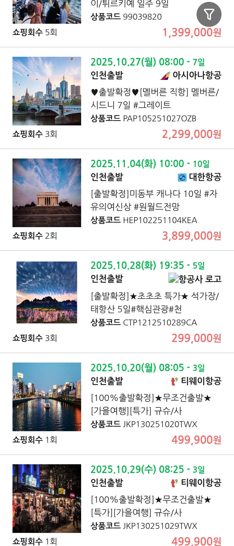 (10월2일(목)) 땡처리 99.9% 확정 패키지