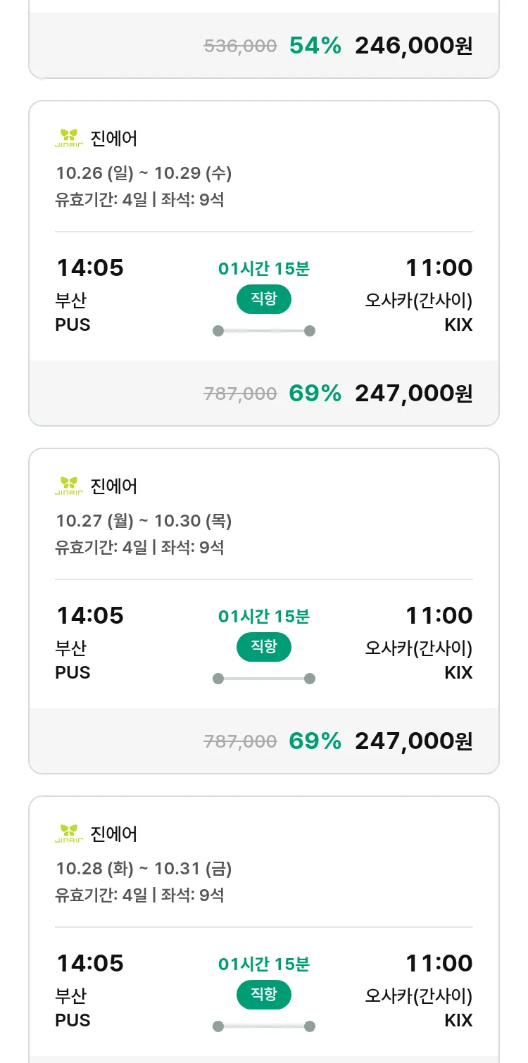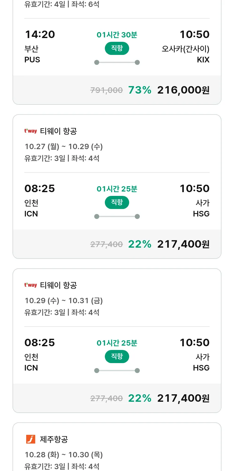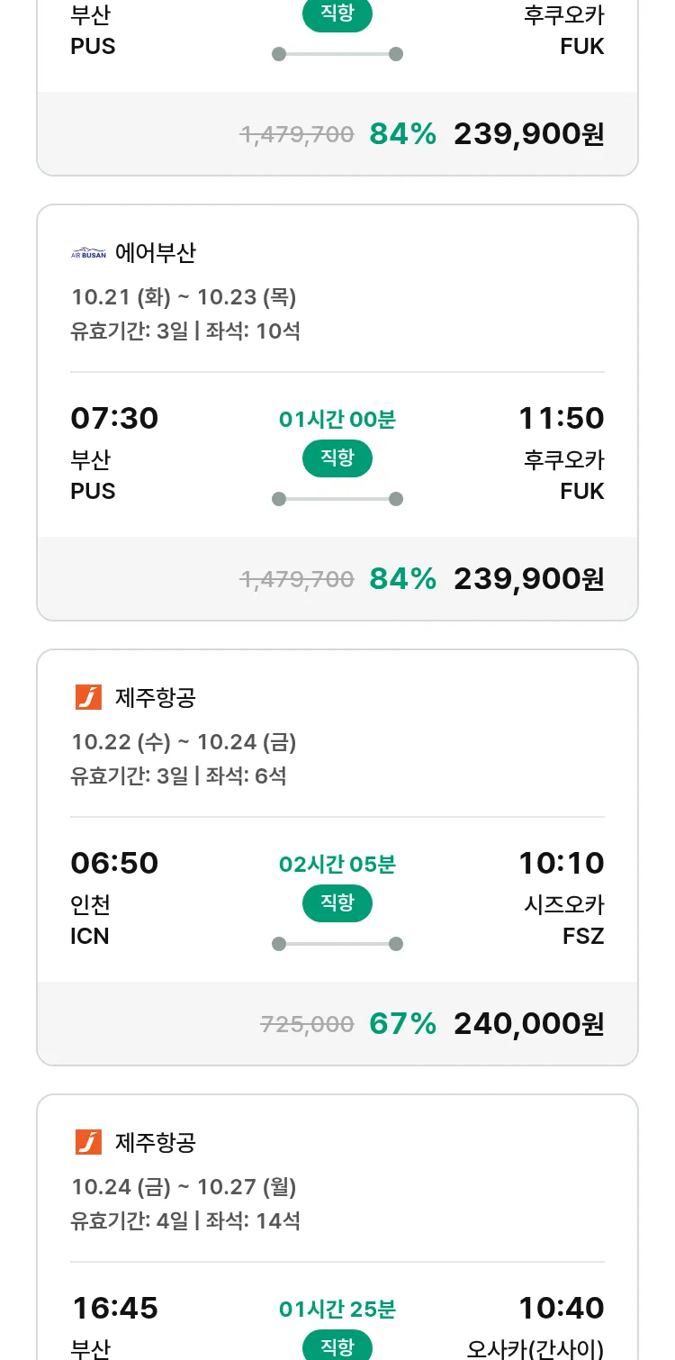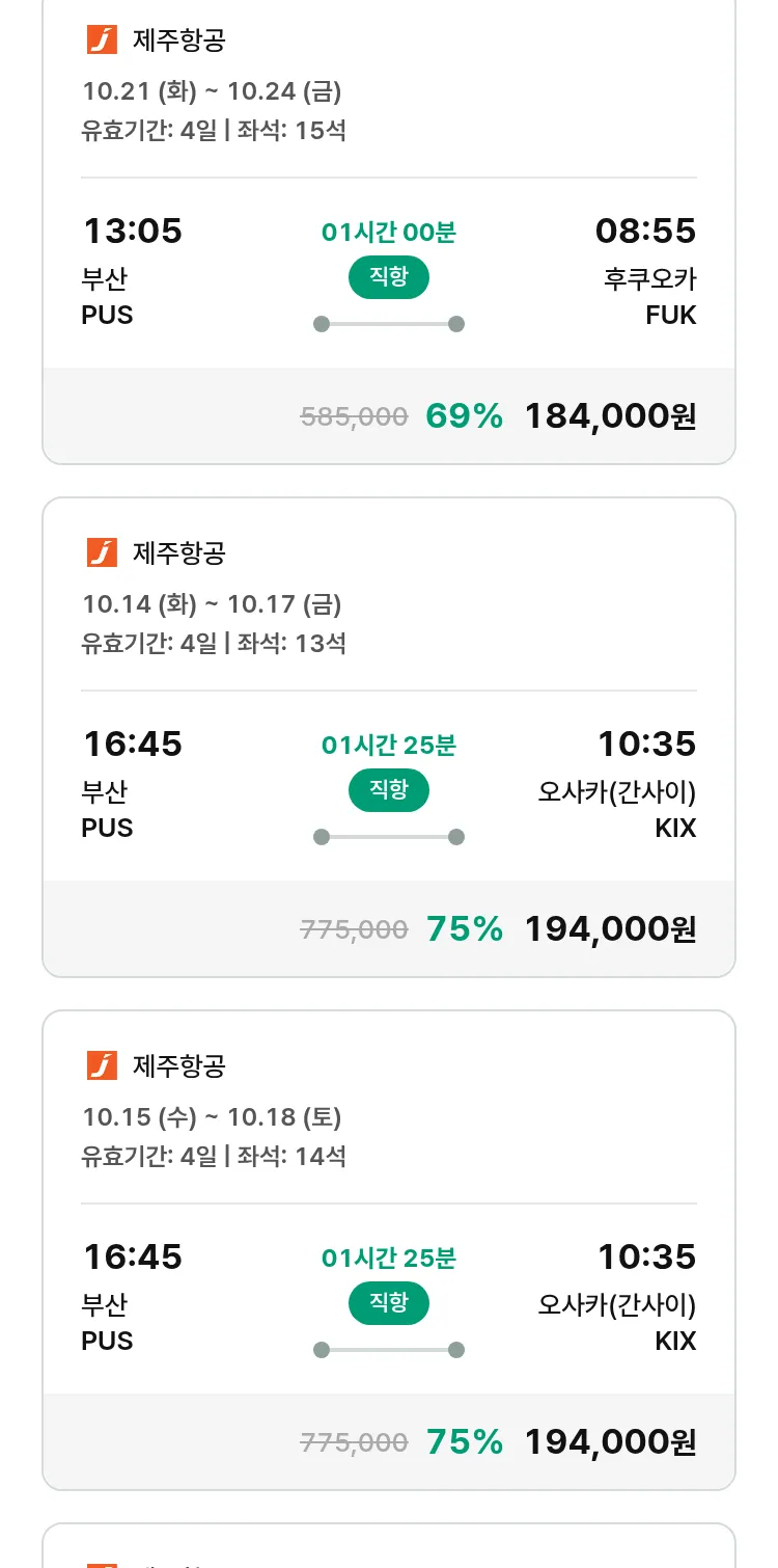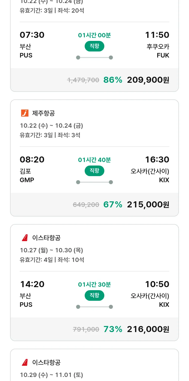 (10월1일(수)) 땡처리 특가 항공권