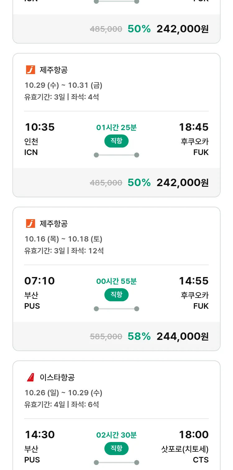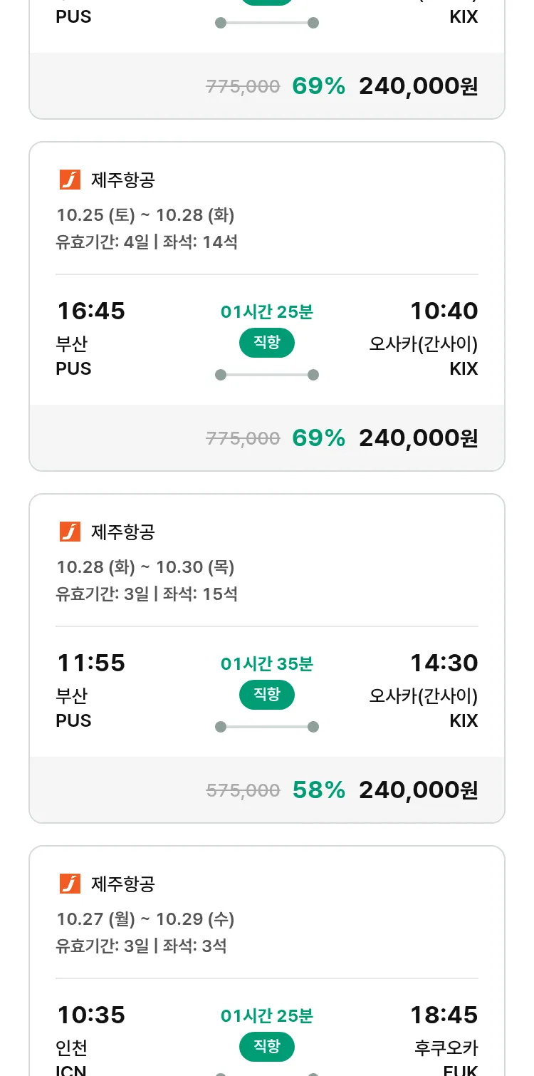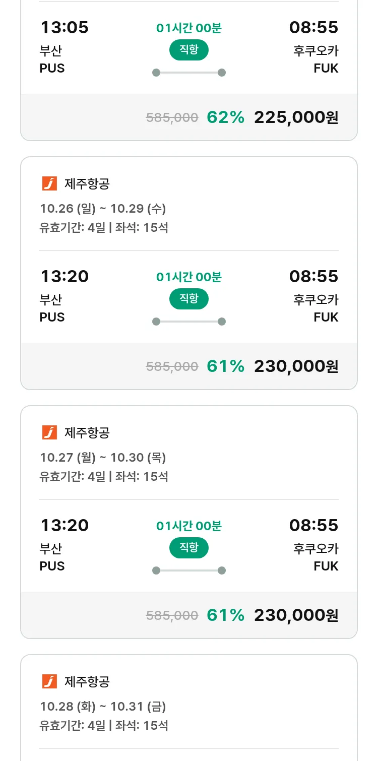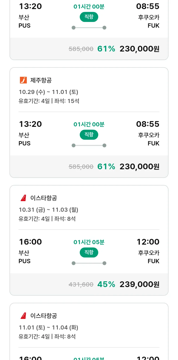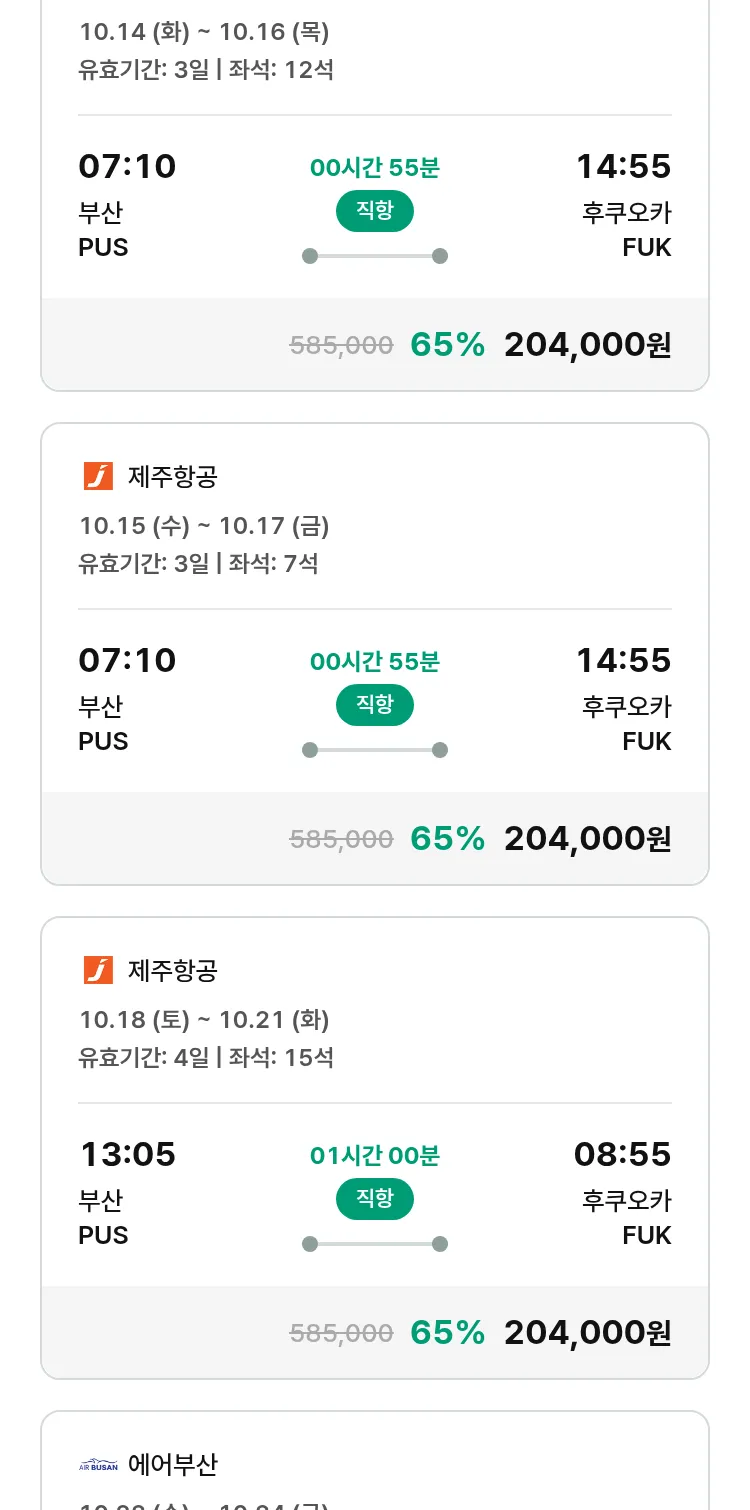 (10월1일(수)) 땡처리 특가 항공권
