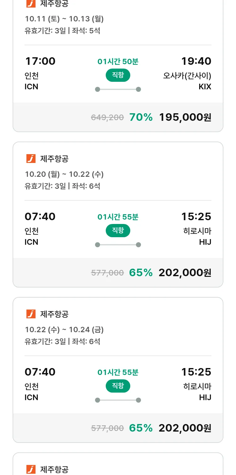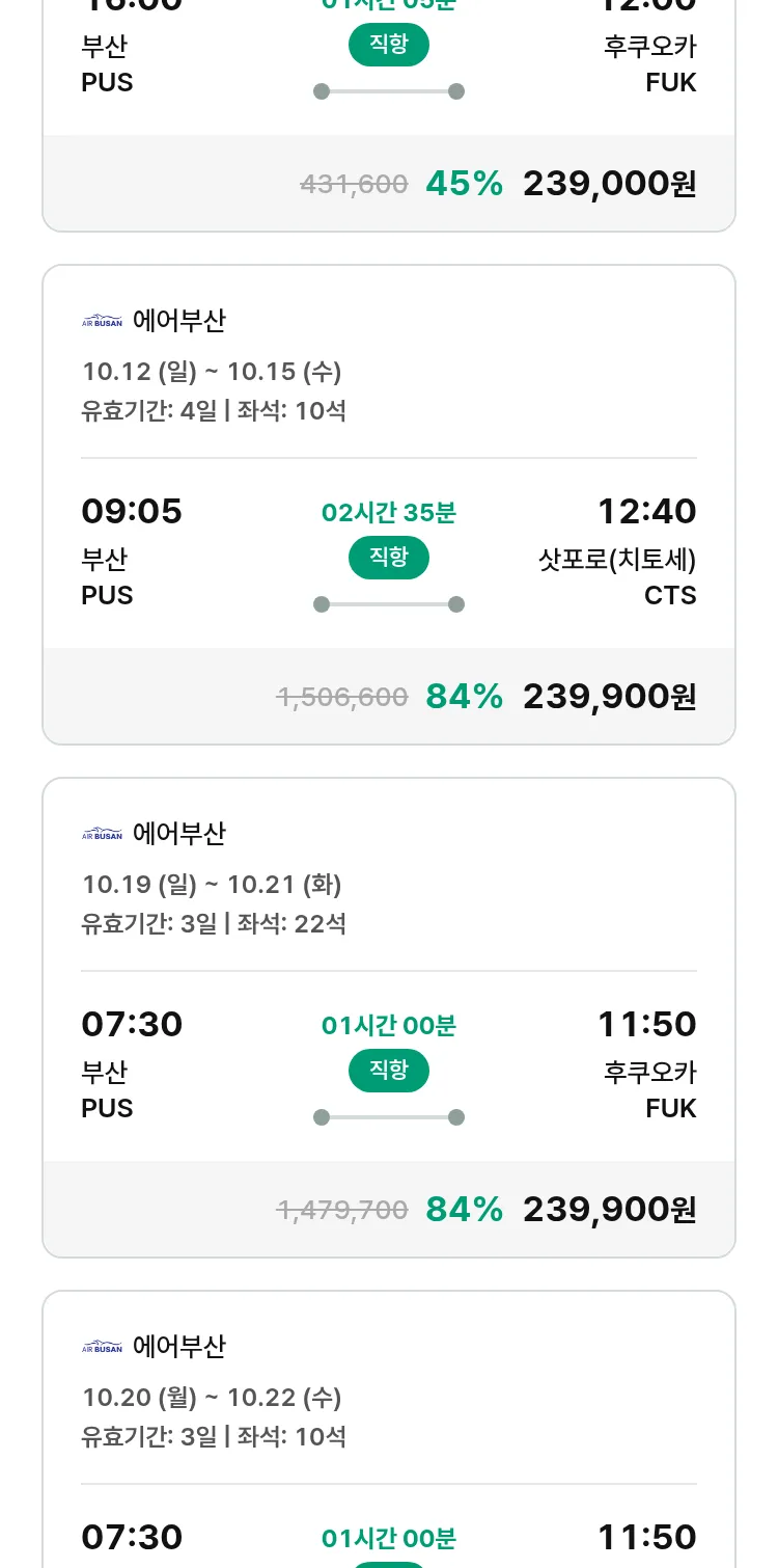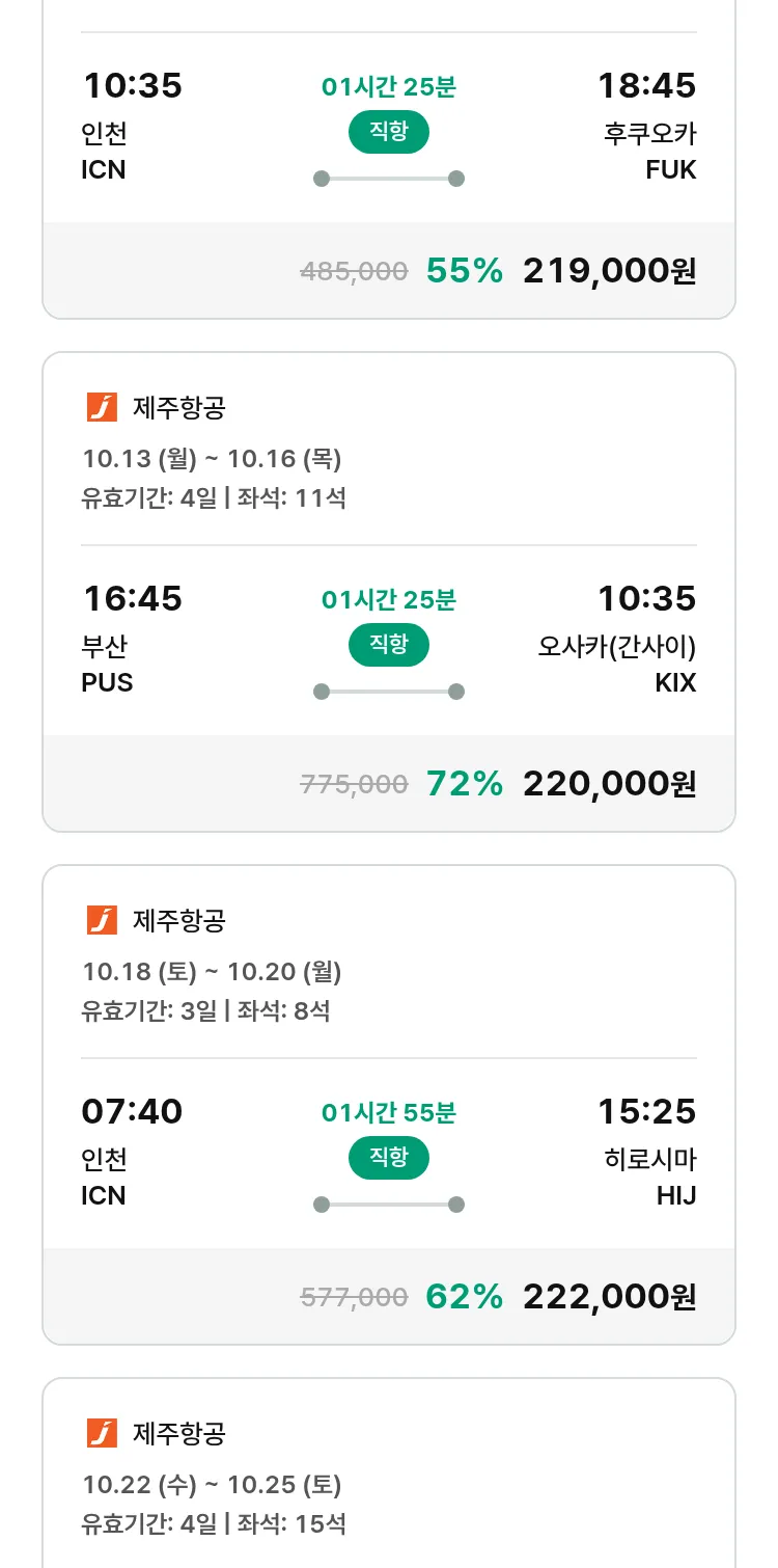 (10월2일(목)) 땡처리 특가 항공권