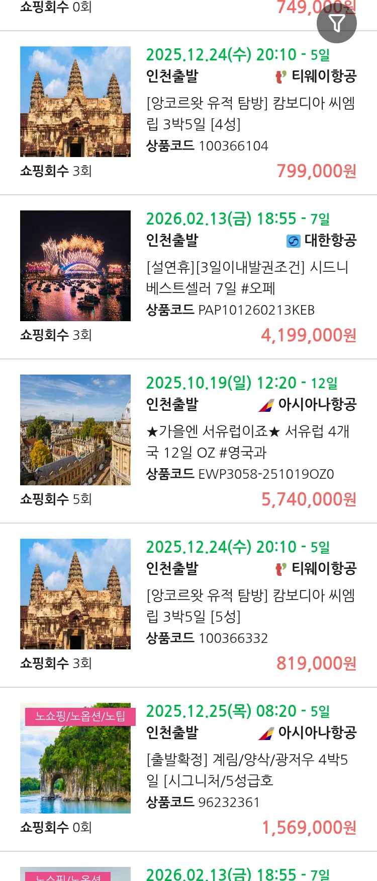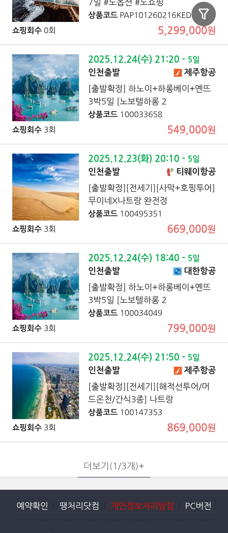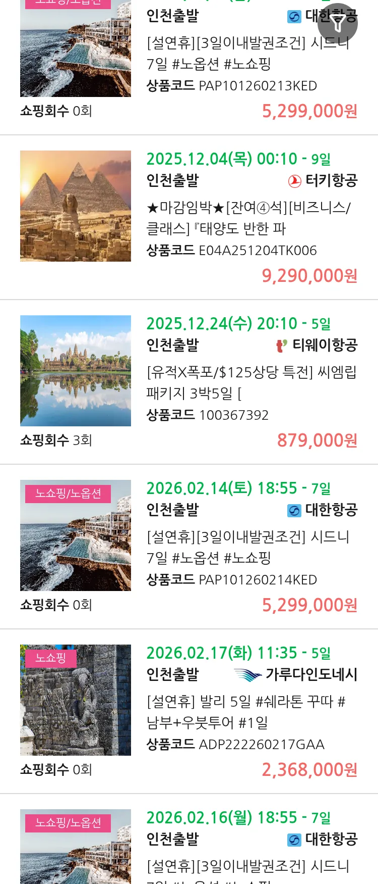 (10월3일(금)) 땡처리 99.9% 확정 패키지