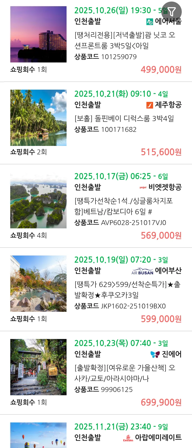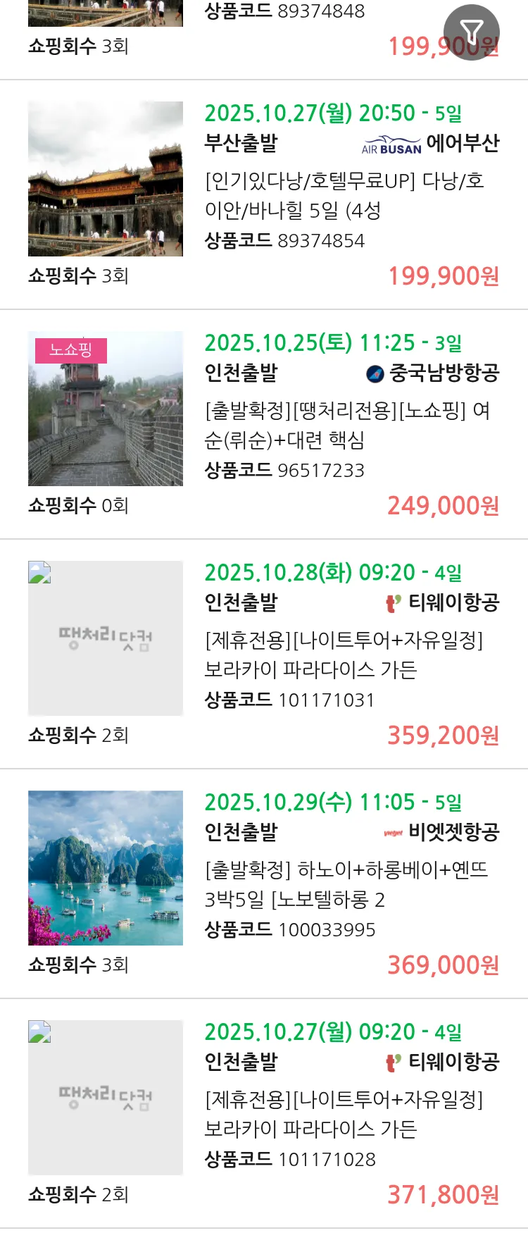 (10월3일(금)) 땡처리 99.9% 확정 패키지