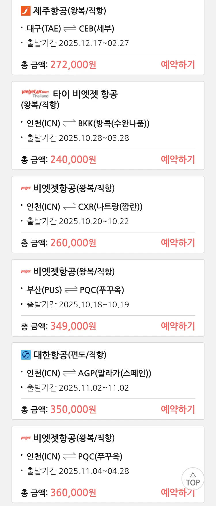 (10월2일(목)) 땡처리 특가 항공권