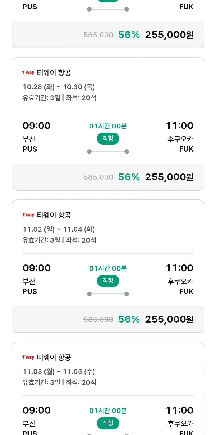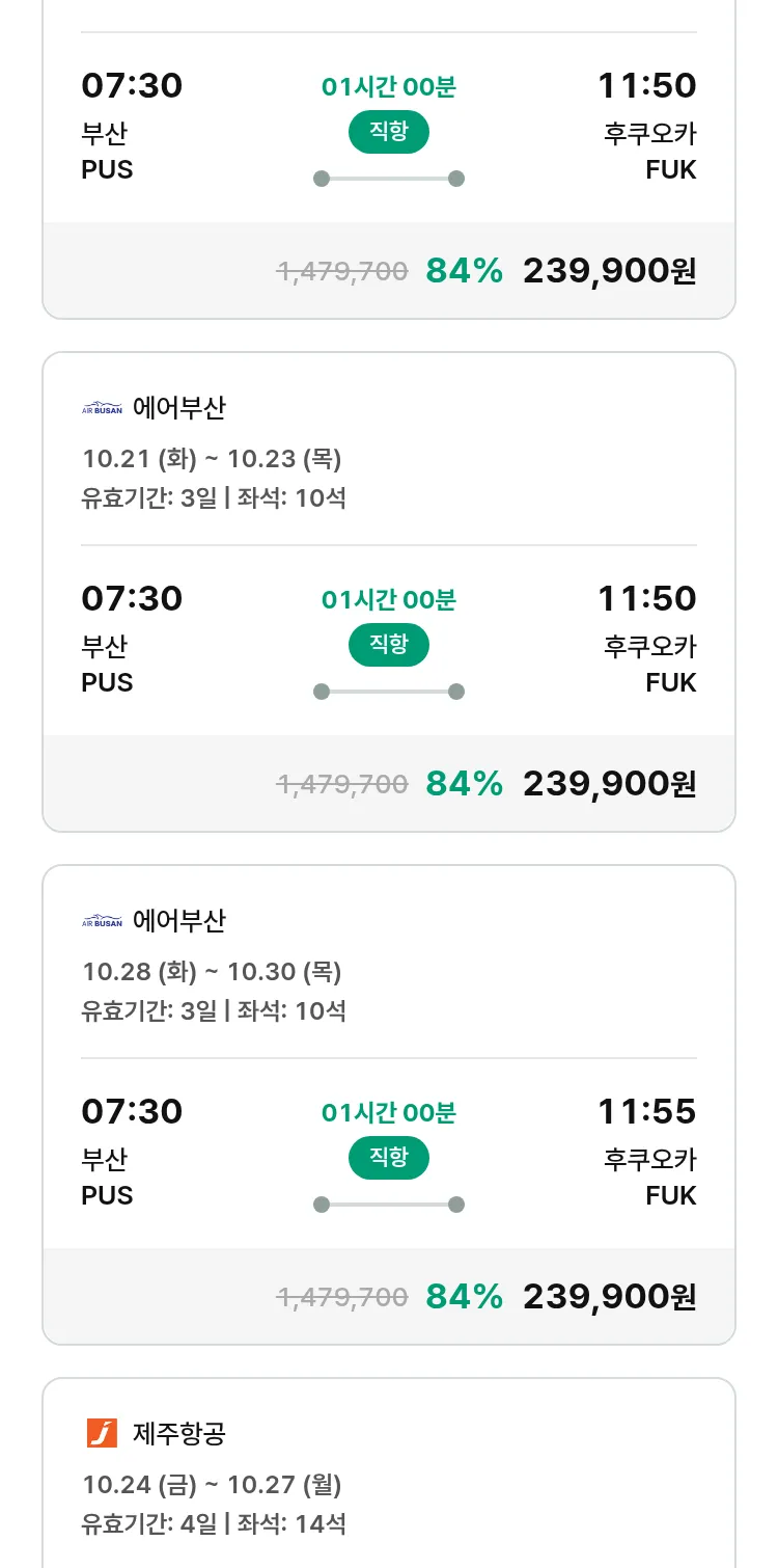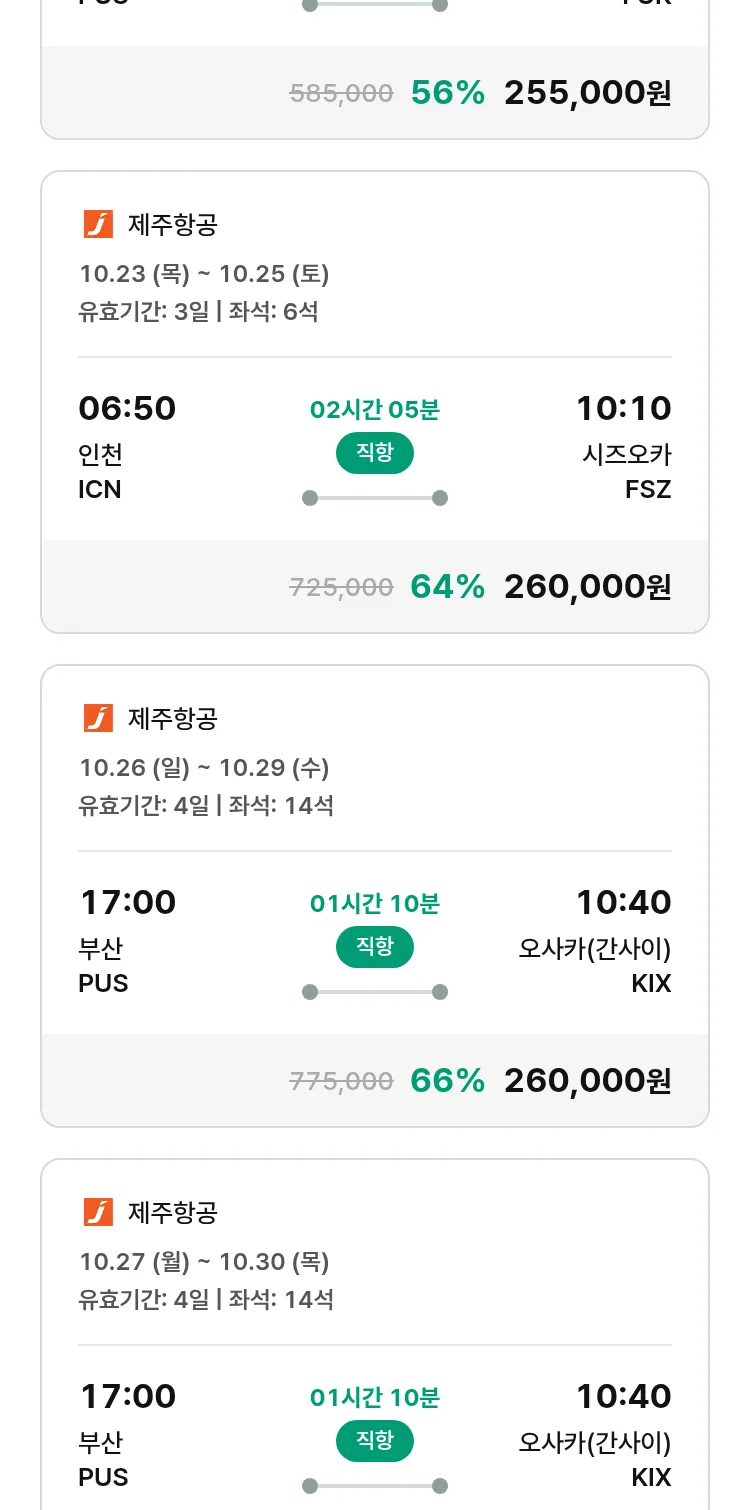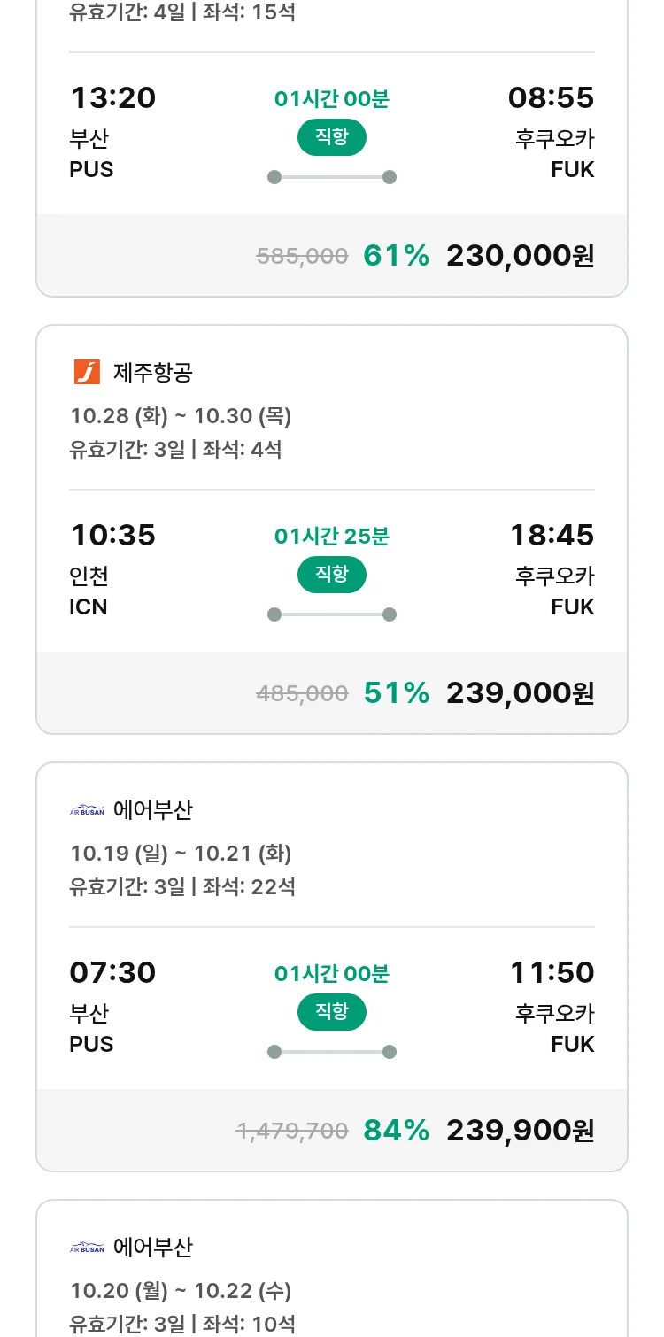 (10월2일(목)) 땡처리 특가 항공권