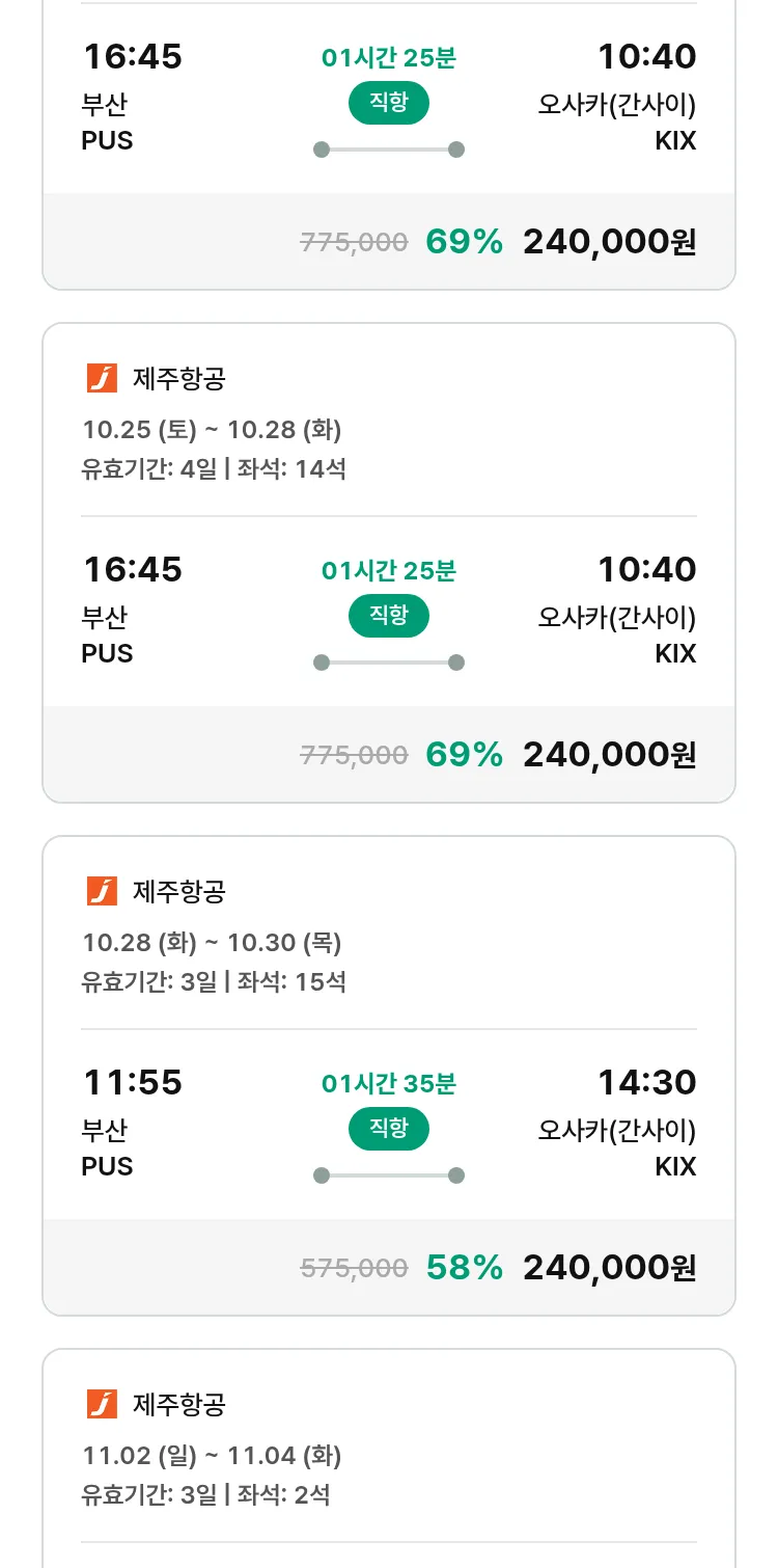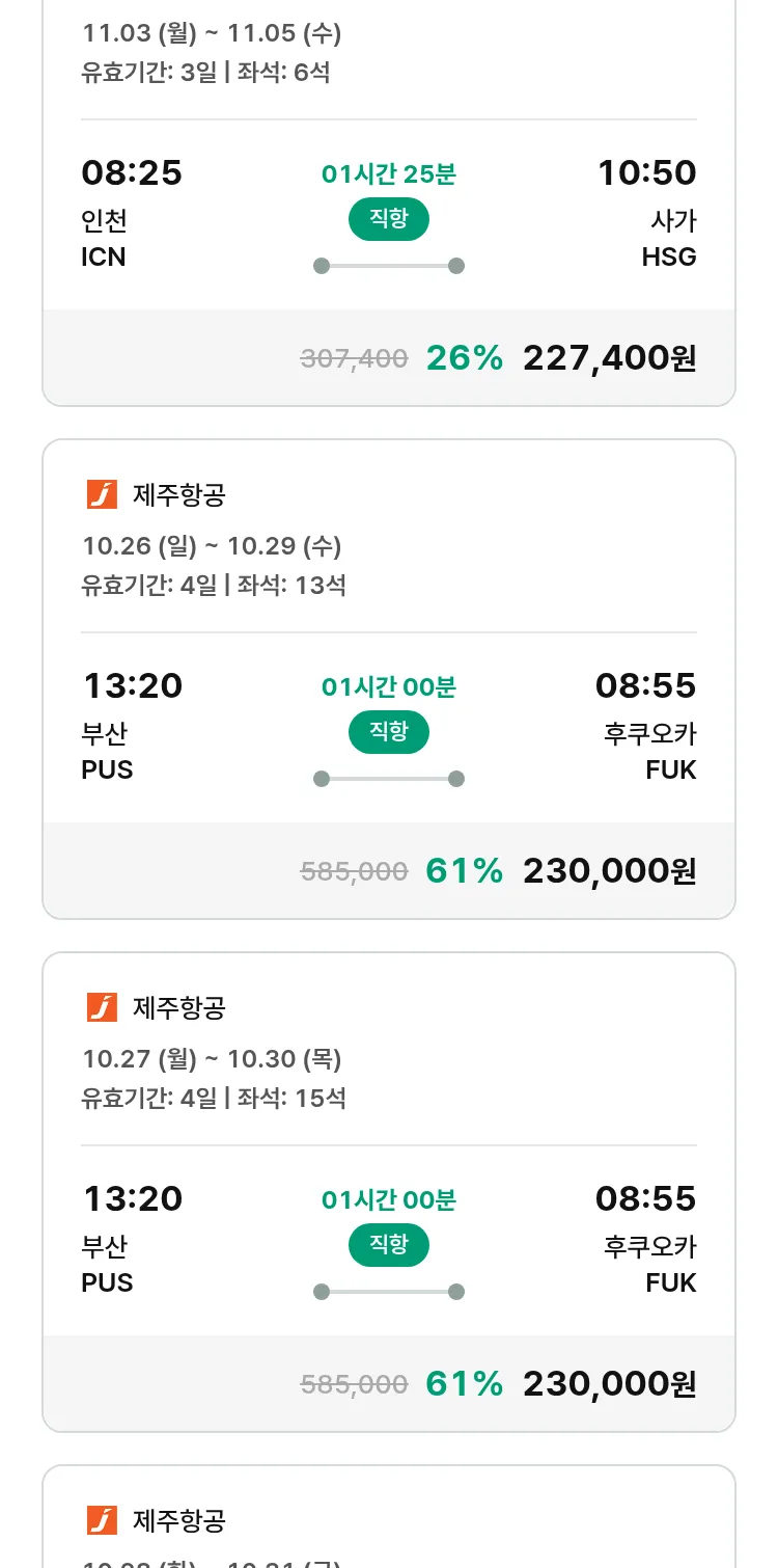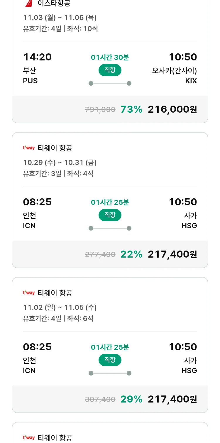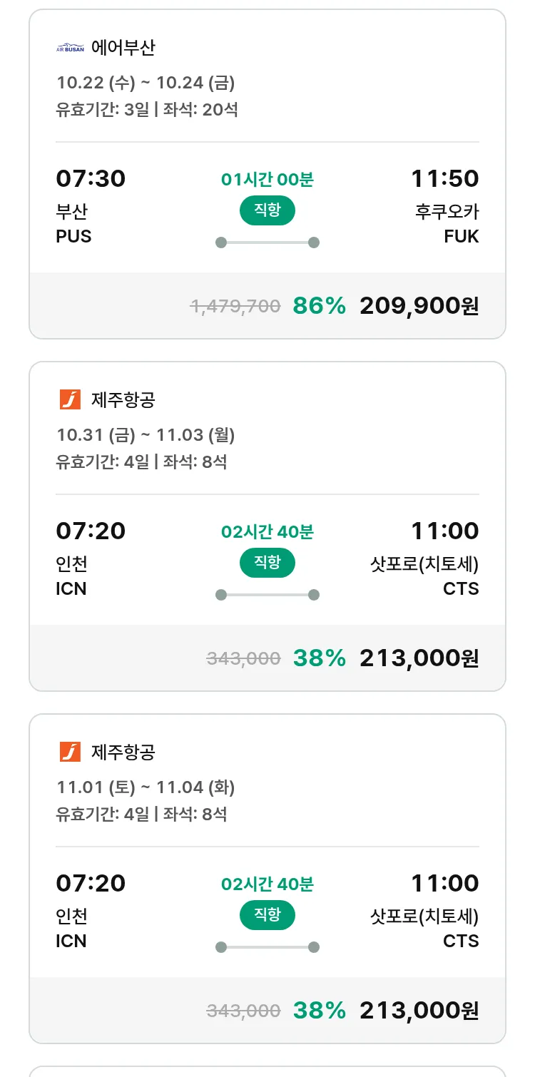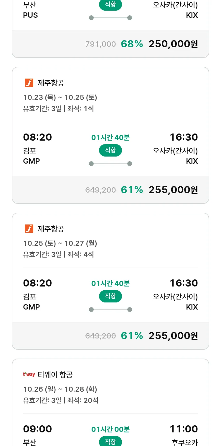 (10월2일(목)) 땡처리 특가 항공권