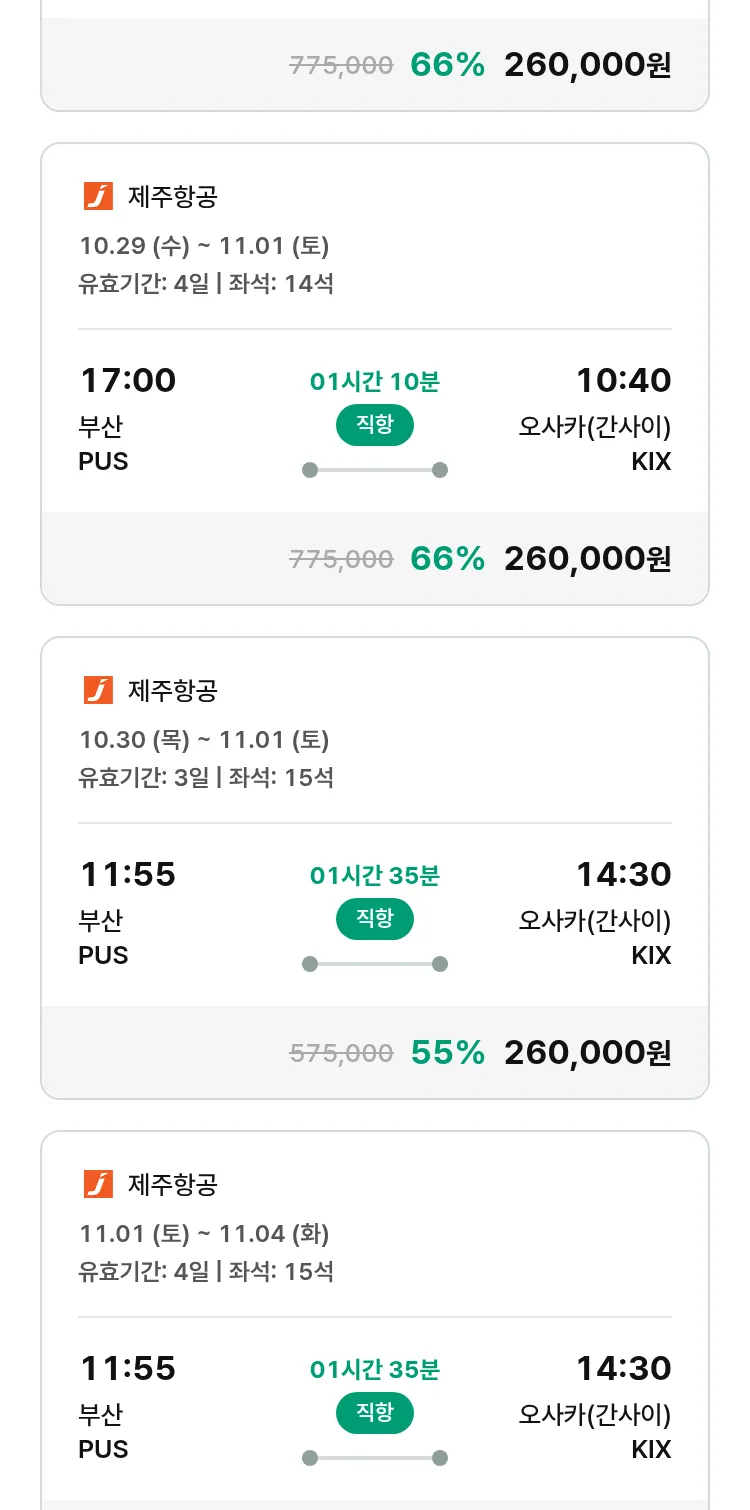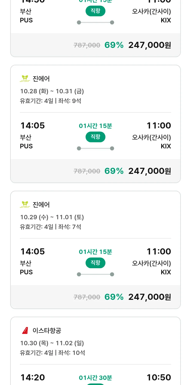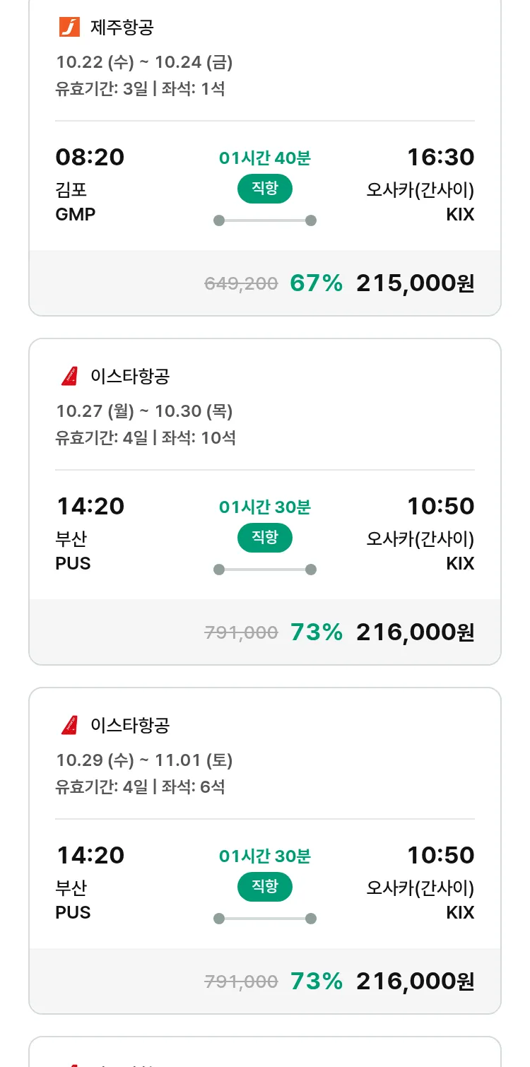(10월3일(금)) 땡처리 특가 항공권