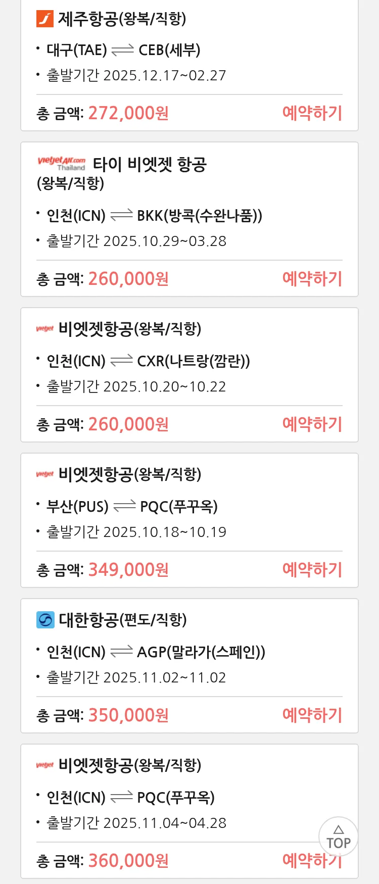 (10월4일(토)) 땡처리 특가 항공권
