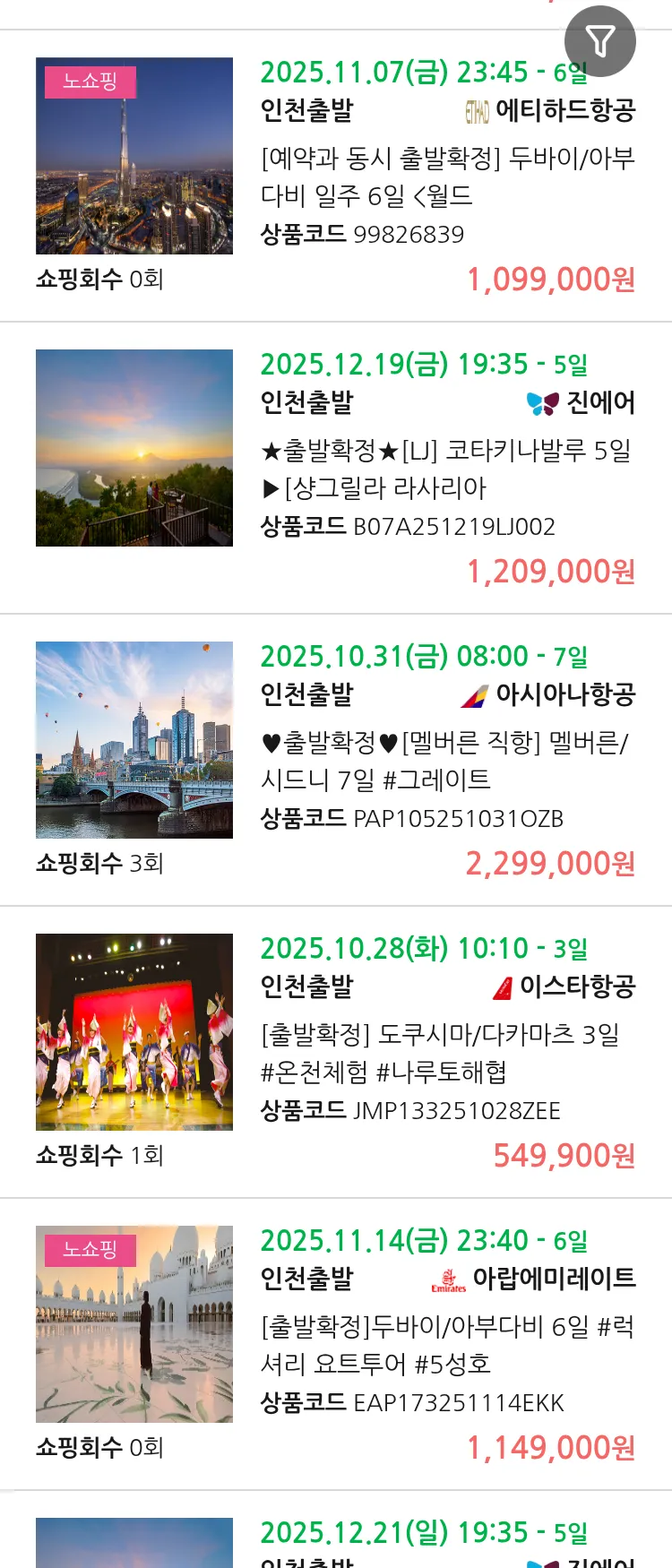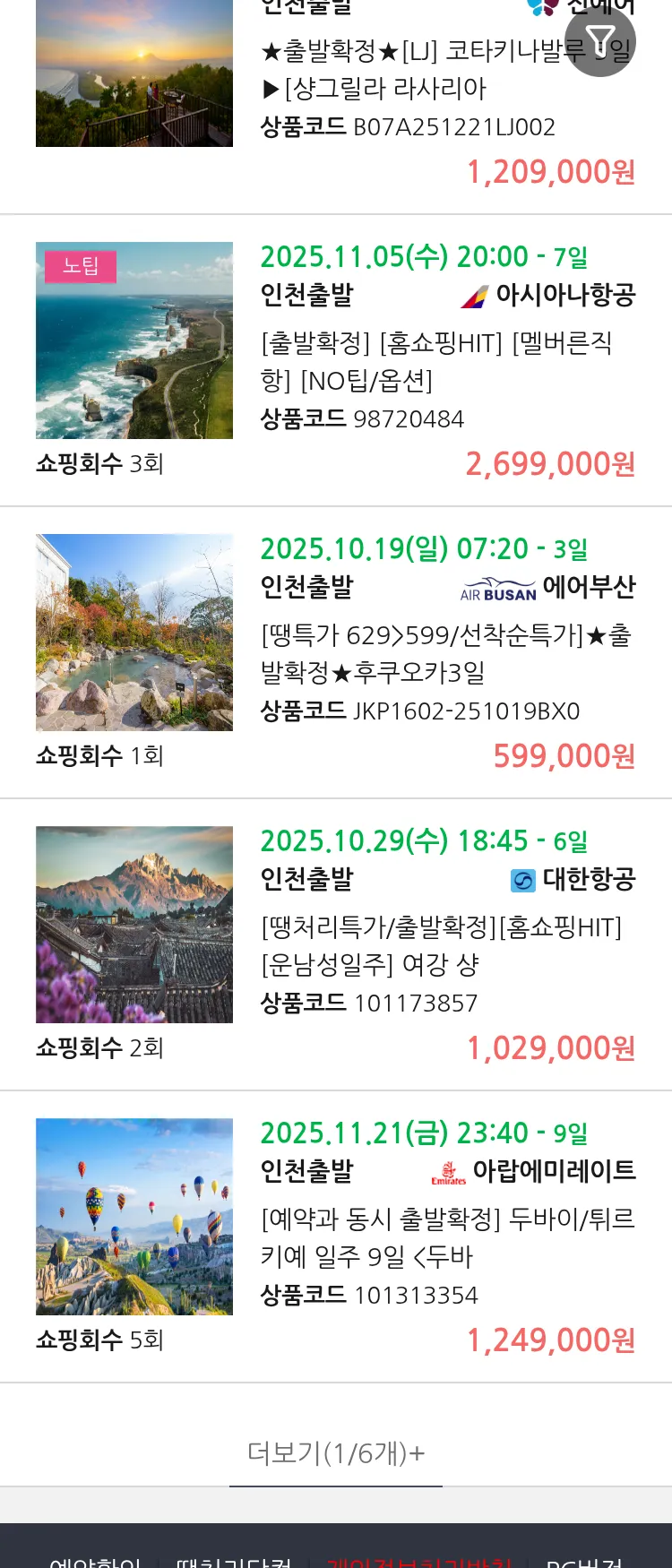 (10월5일(일)) 땡처리 99.9% 확정 패키지