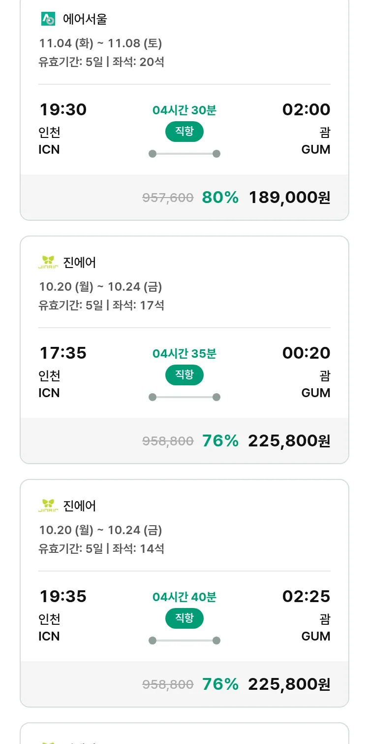 (10월4일(토)) 땡처리 99.9% 확정 패키지