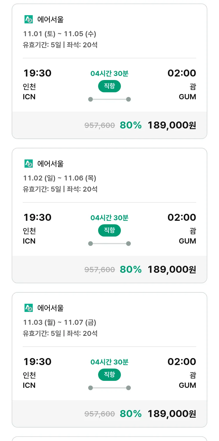 (10월5일(일)) 땡처리 99.9% 확정 패키지