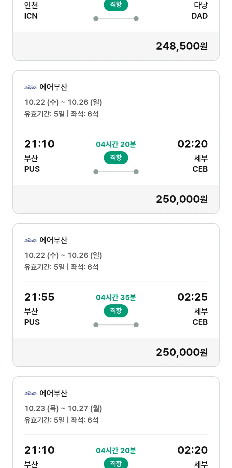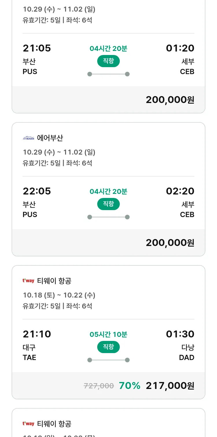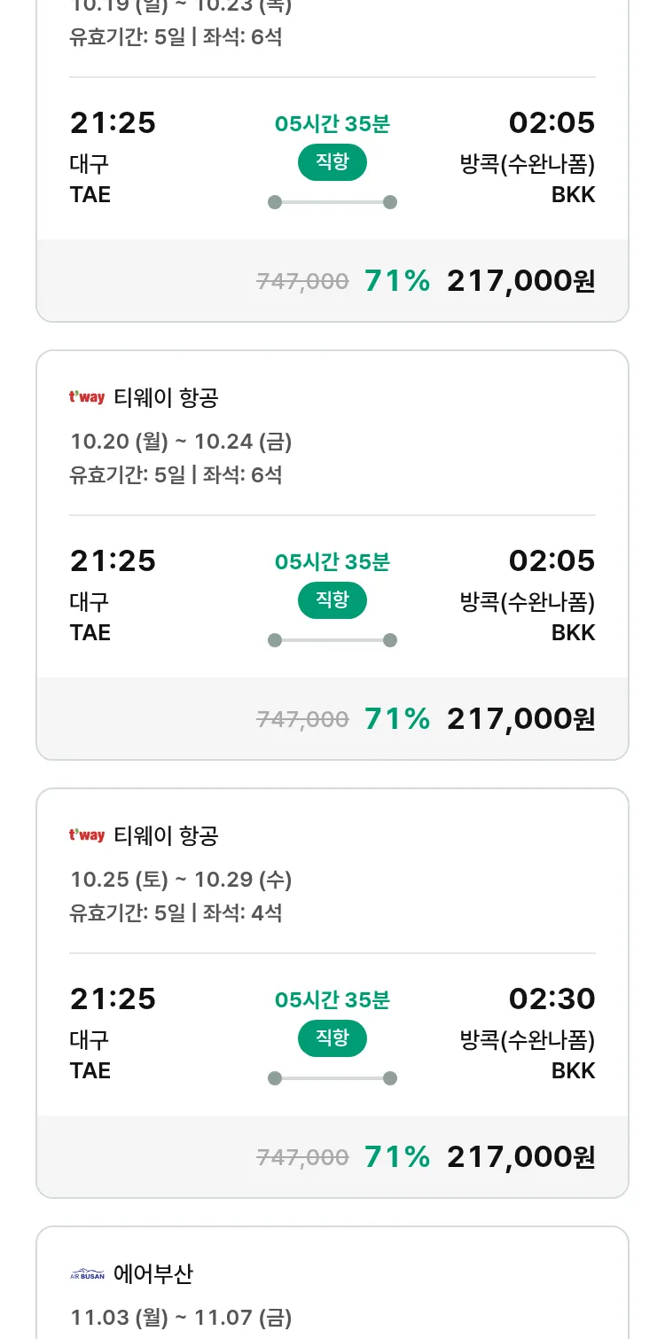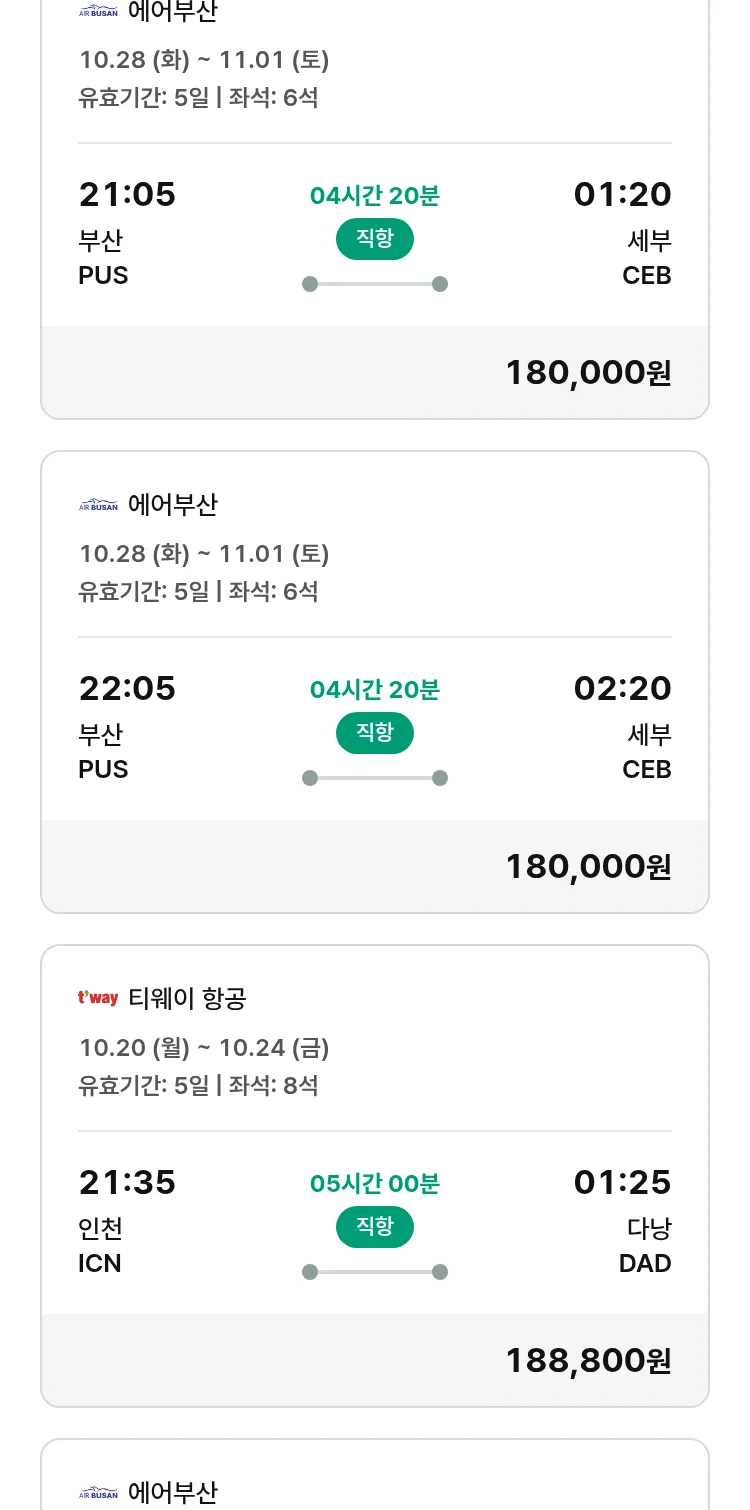 (10월5일(일)) 땡처리 특가 항공권