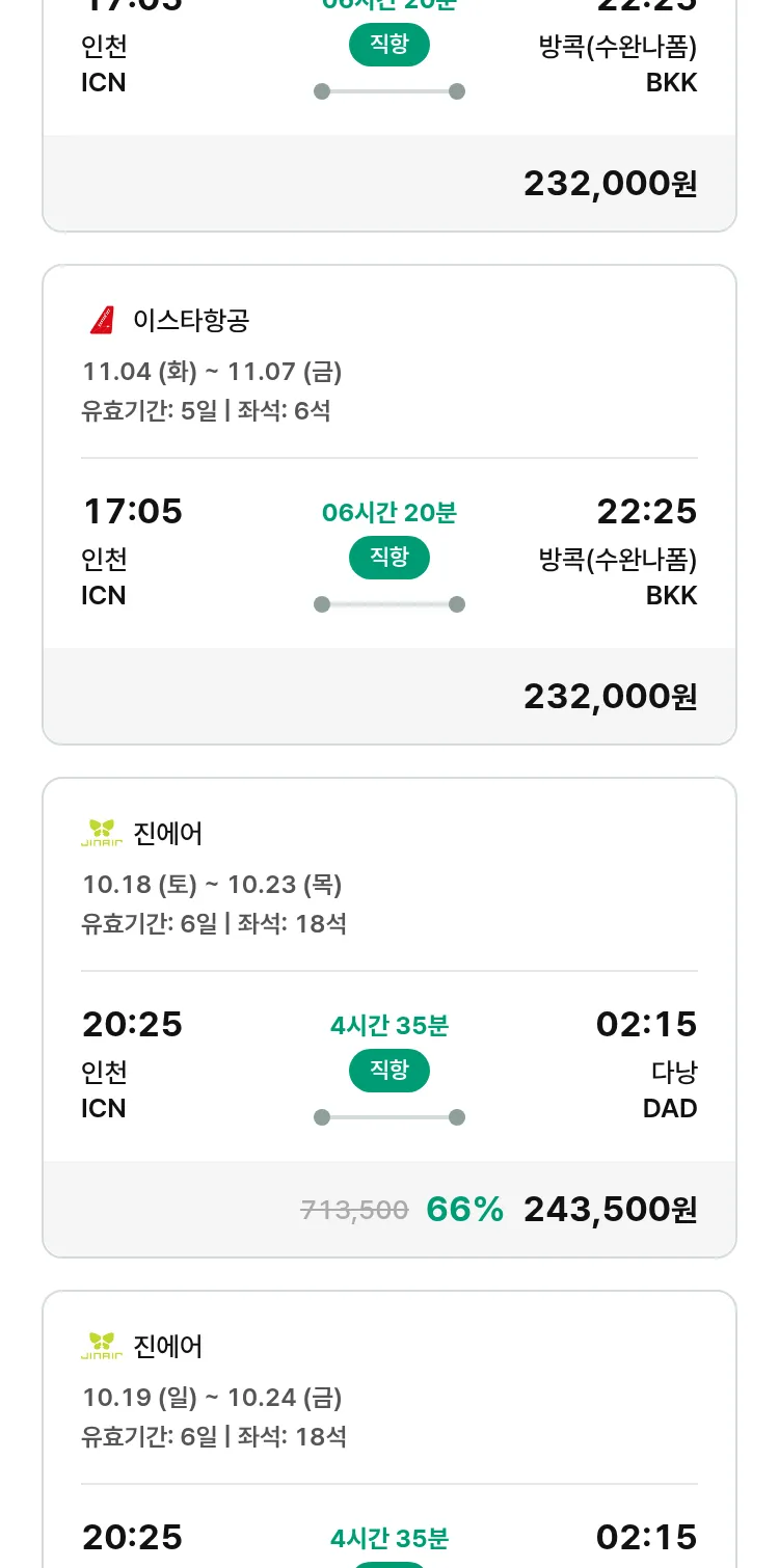 (10월4일(토)) 땡처리 특가 항공권