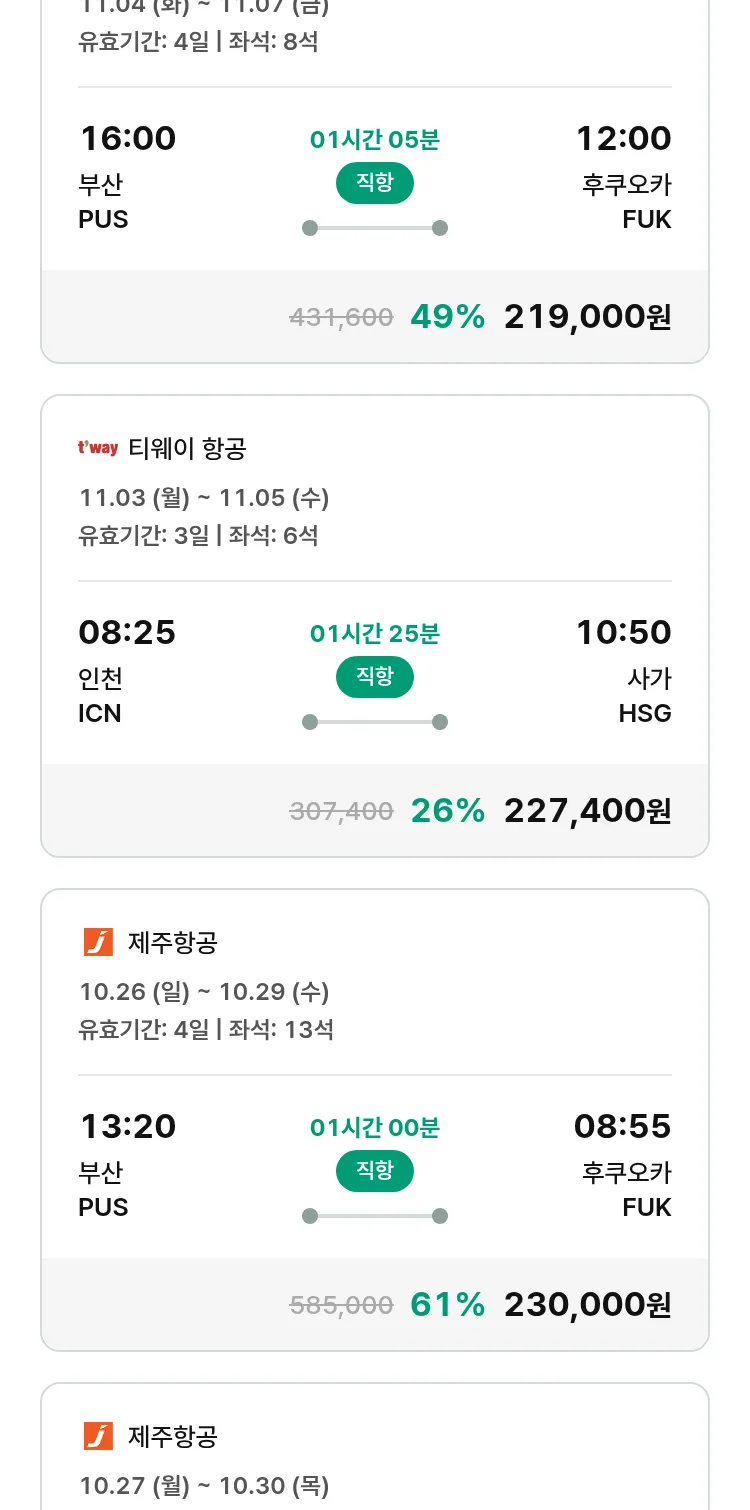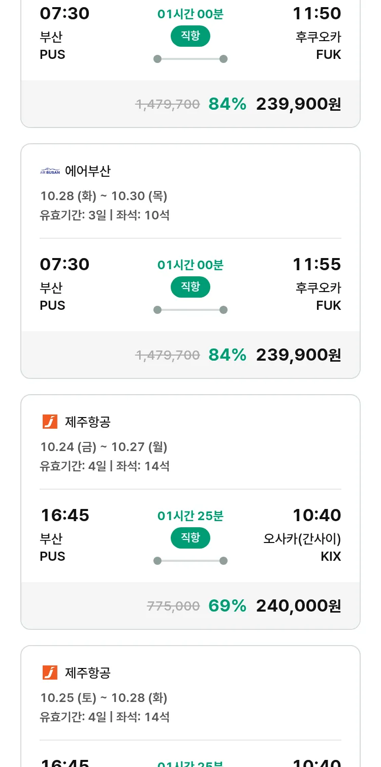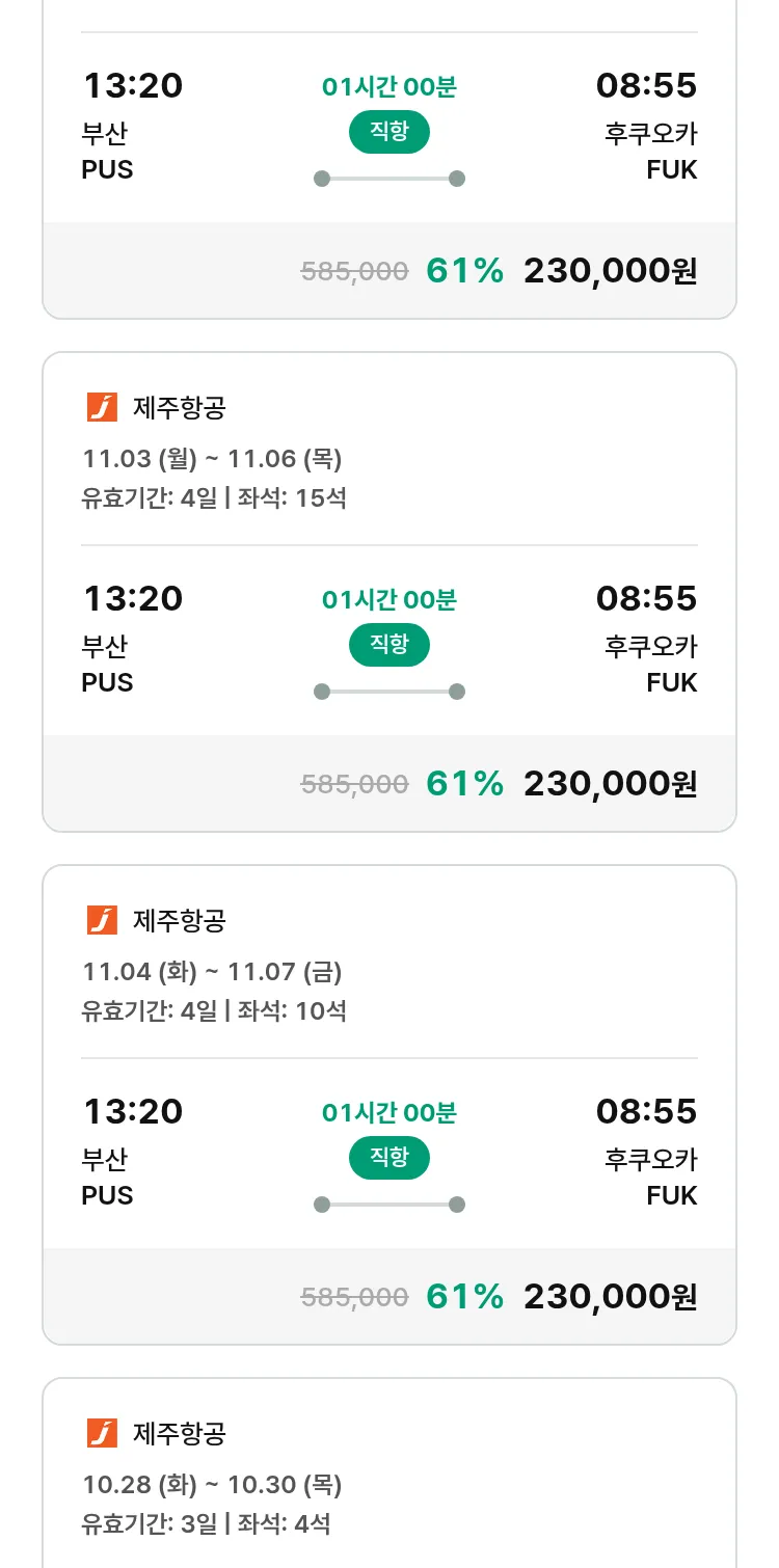 (10월4일(토)) 땡처리 99.9% 확정 패키지