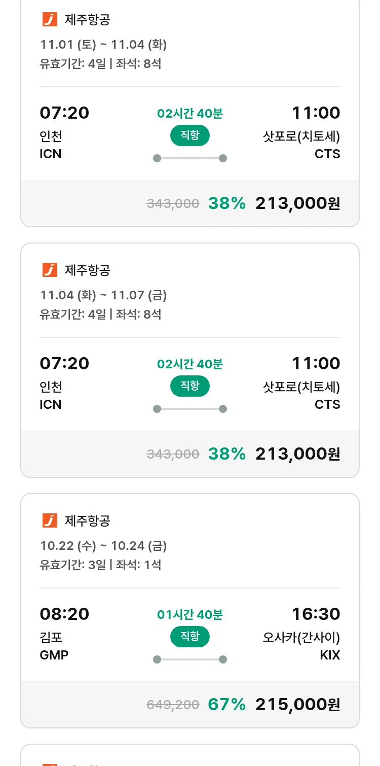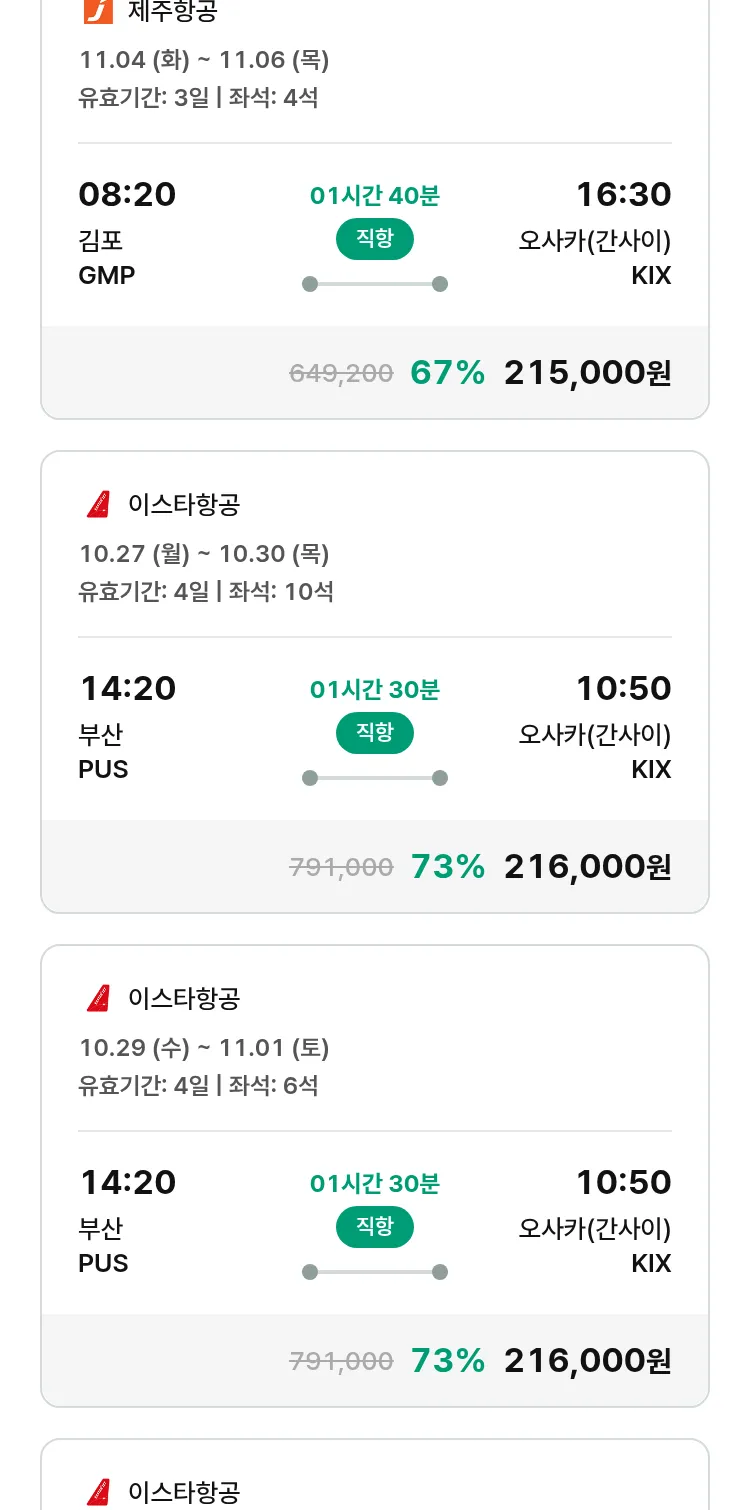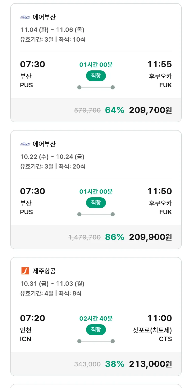 (10월4일(토)) 모두투어 일본 특가 항공권