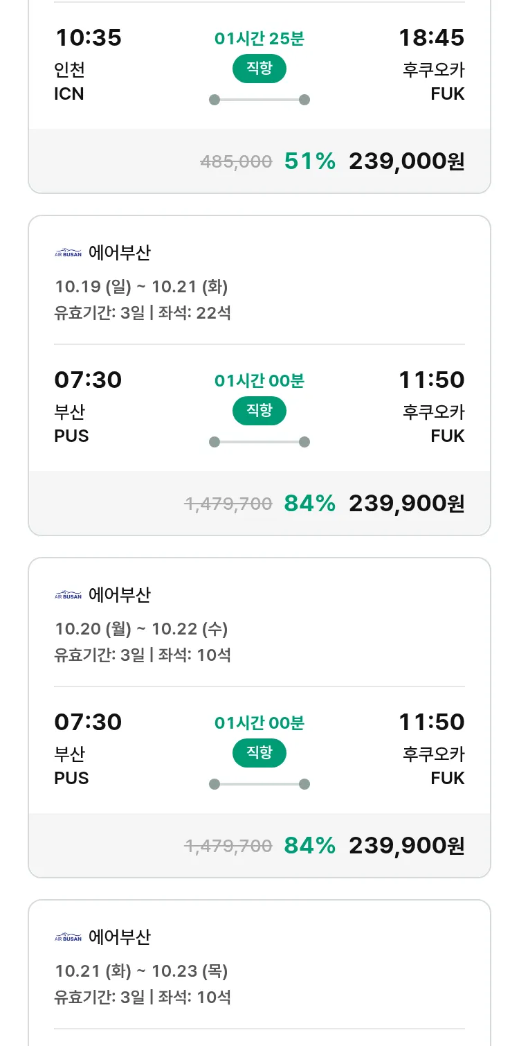 (10월5일(일)) 땡처리 99.9% 확정 패키지