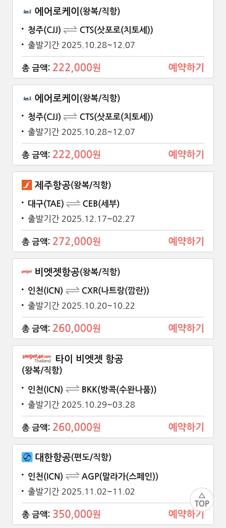 (10월6일(월)) 땡처리 특가 항공권