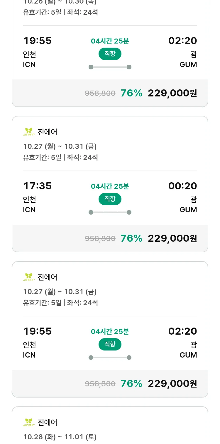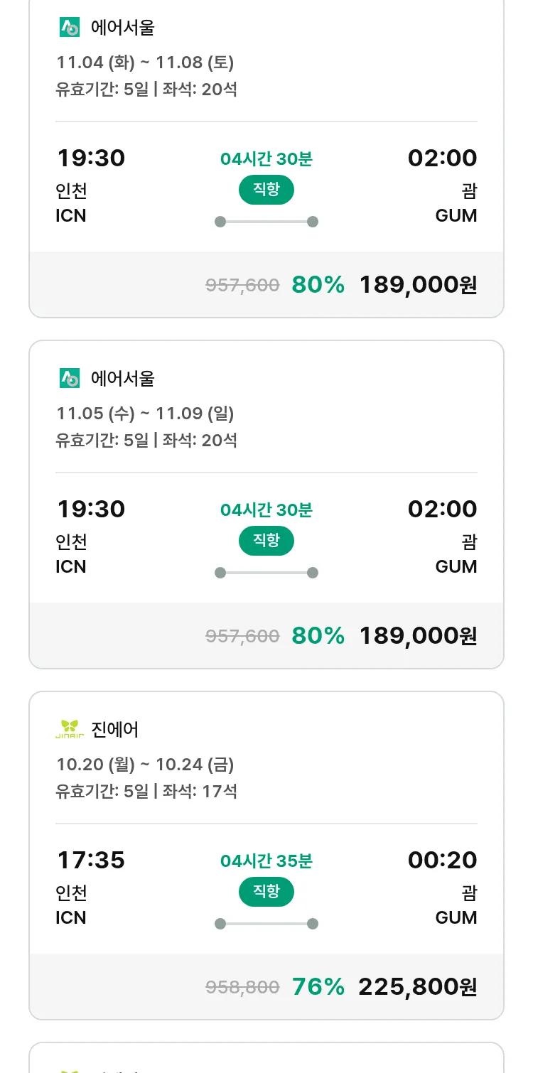 (10월6일(월)) 땡처리 99.9% 확정 패키지