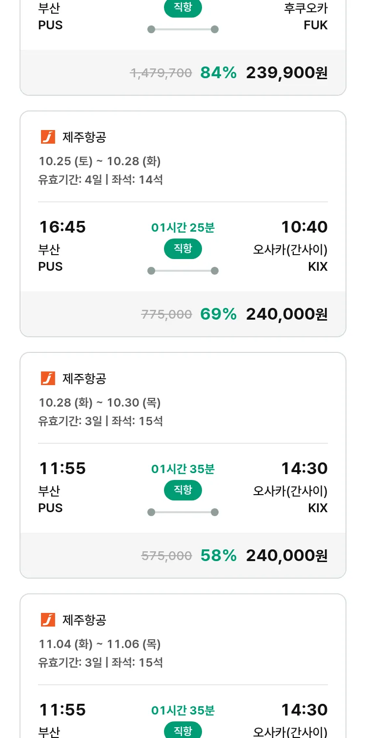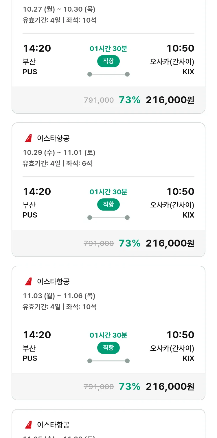 (10월4일(토)) 땡처리 99.9% 확정 패키지