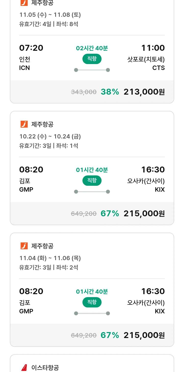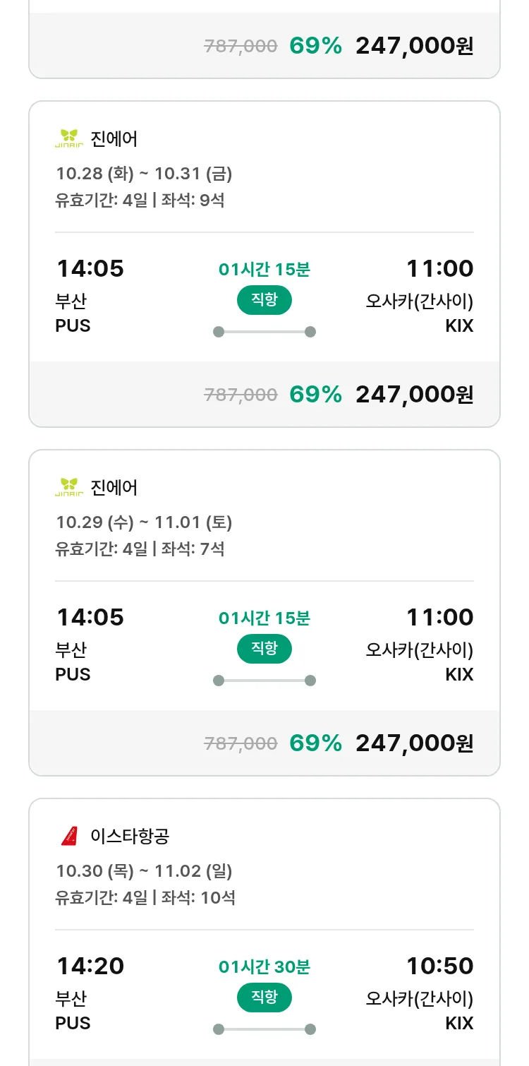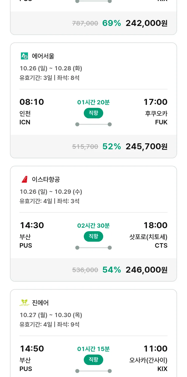 (10월4일(토)) 모두투어 일본 특가 항공권