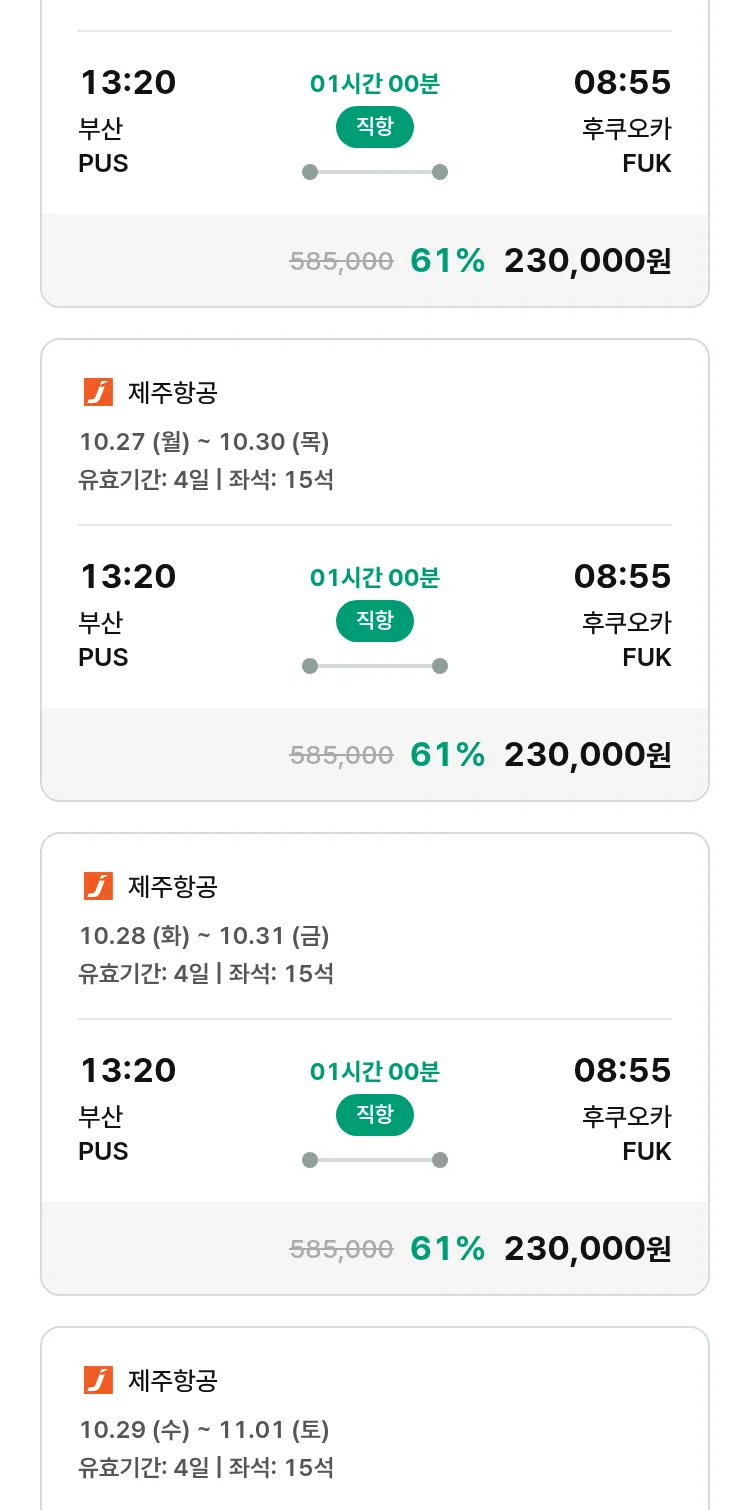 (10월5일(일)) 땡처리 99.9% 확정 패키지