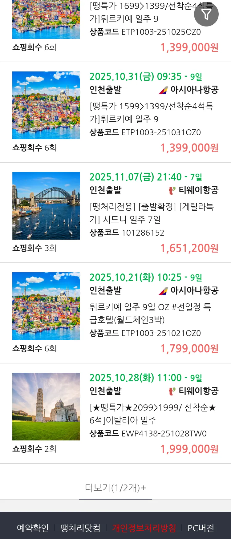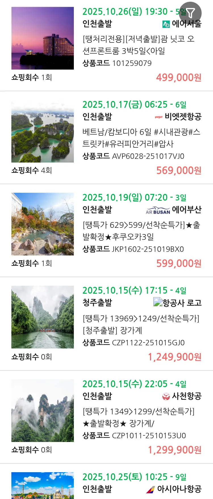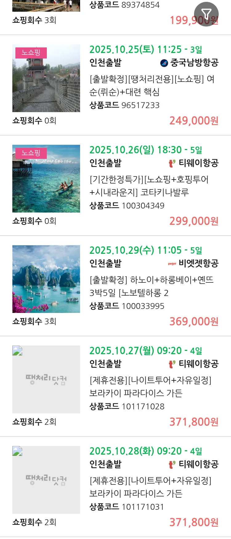 (10월6일(월)) 땡처리 99.9% 확정 패키지