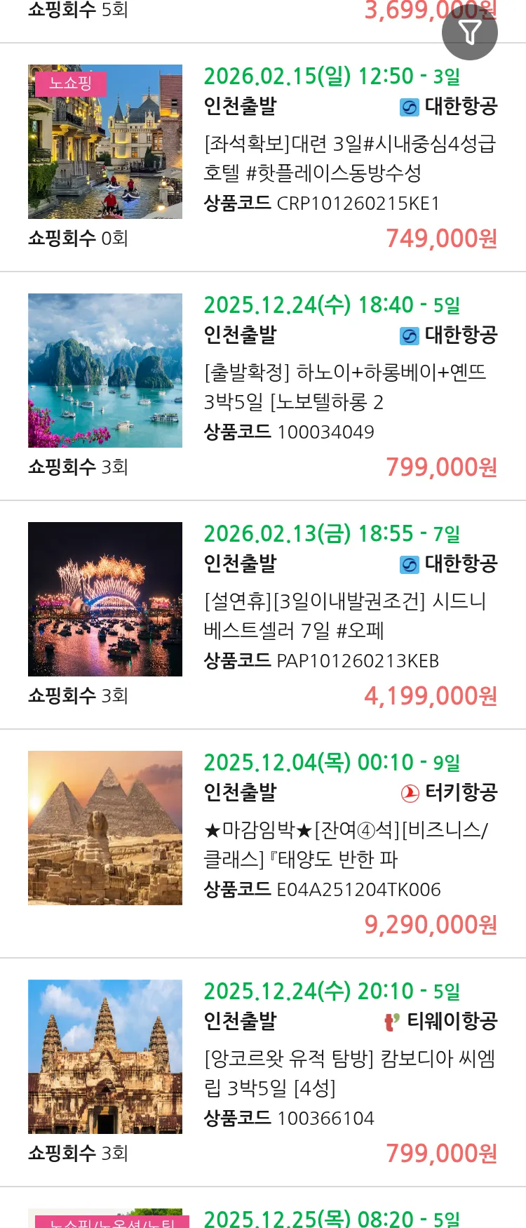 (10월7일(화)) 땡처리 99.9% 확정 패키지