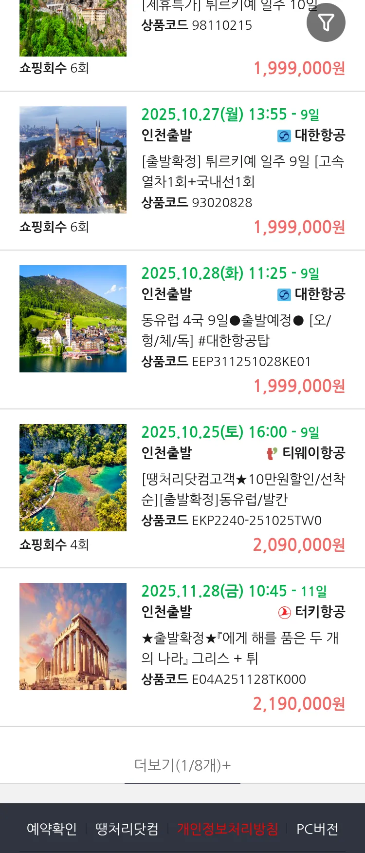(10월8일(수)) 땡처리 99.9% 확정 패키지