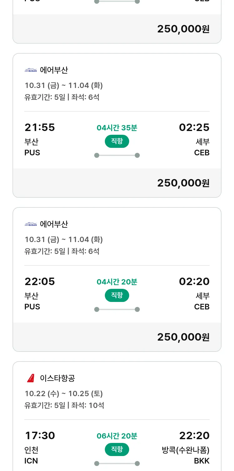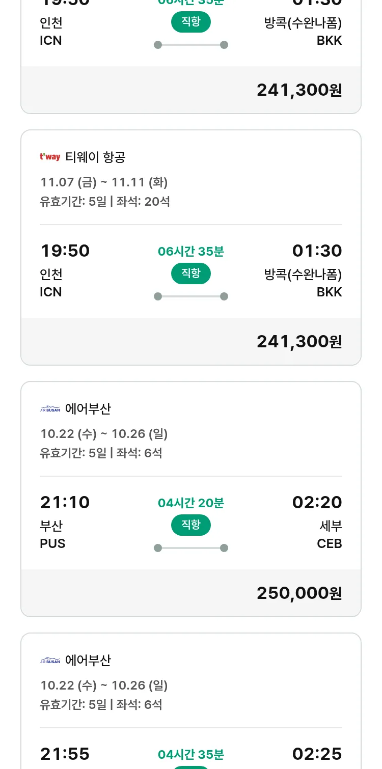 (10월7일(화)) 땡처리 특가 항공권