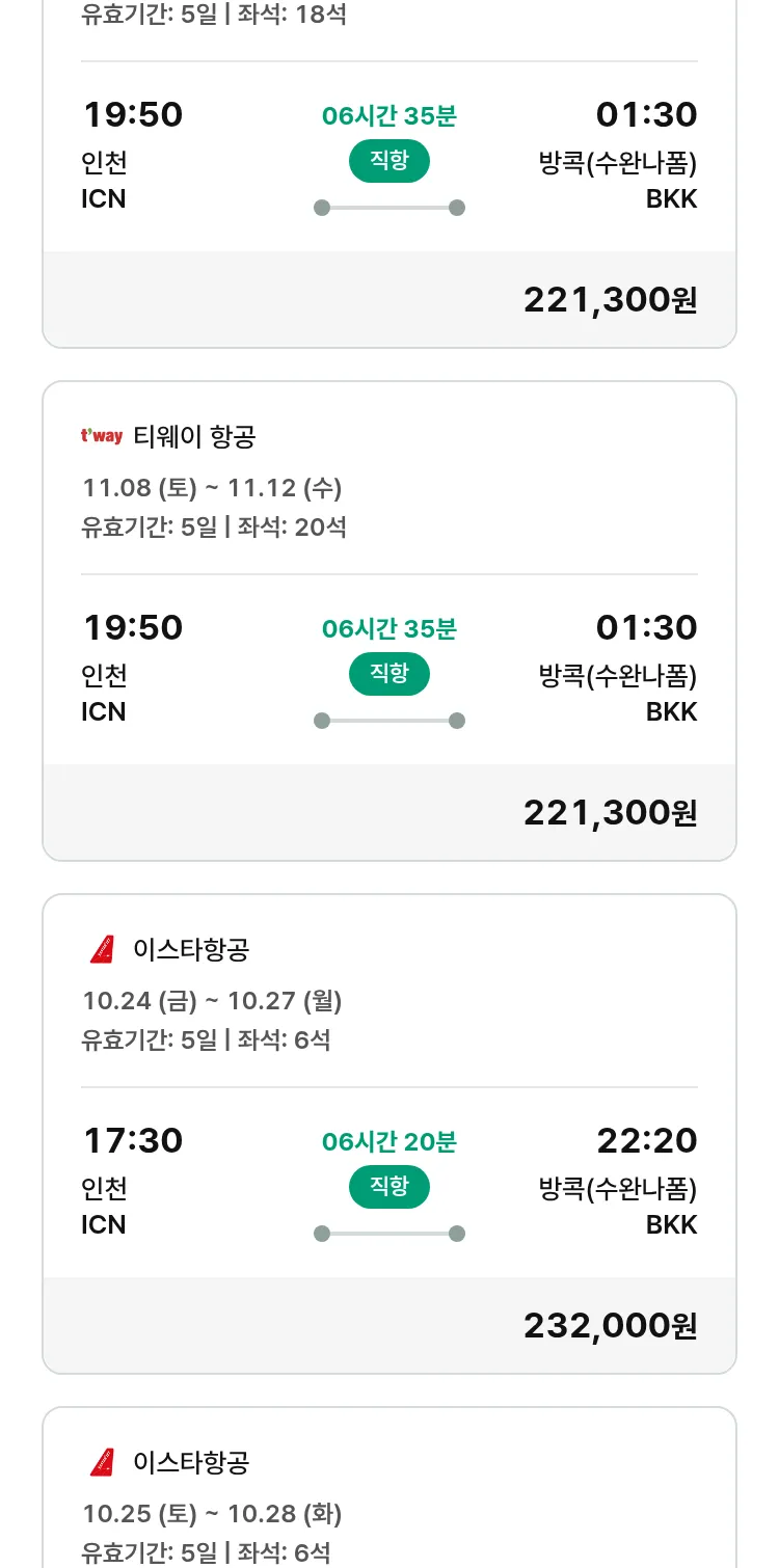 (10월8일(수)) 땡처리 특가 항공권