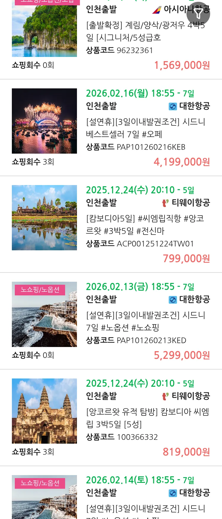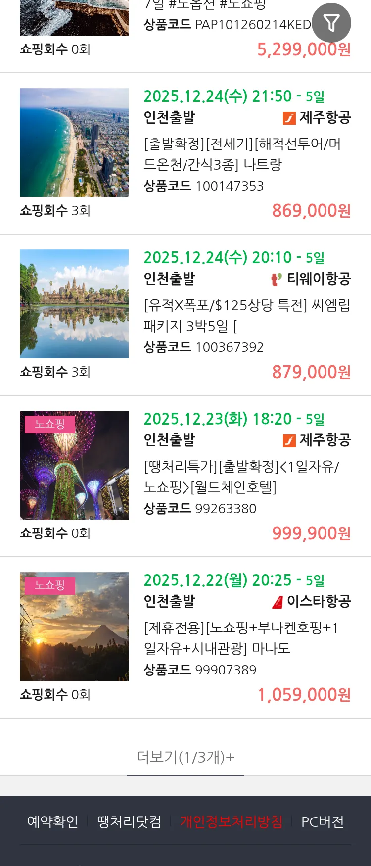 (10월9일(목)) 땡처리 99.9% 확정 패키지