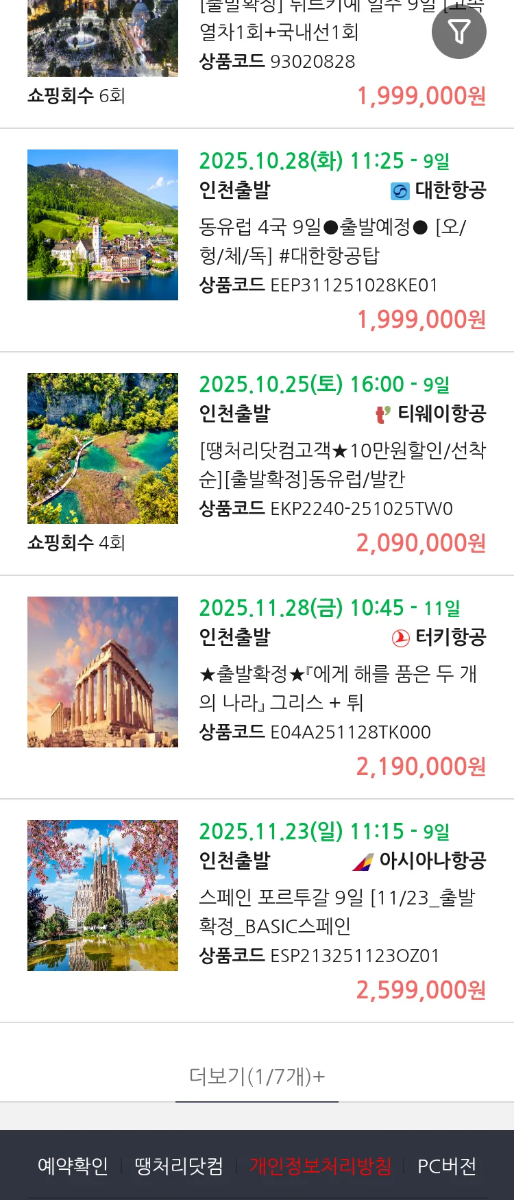(10월9일(목)) 땡처리 99.9% 확정 패키지