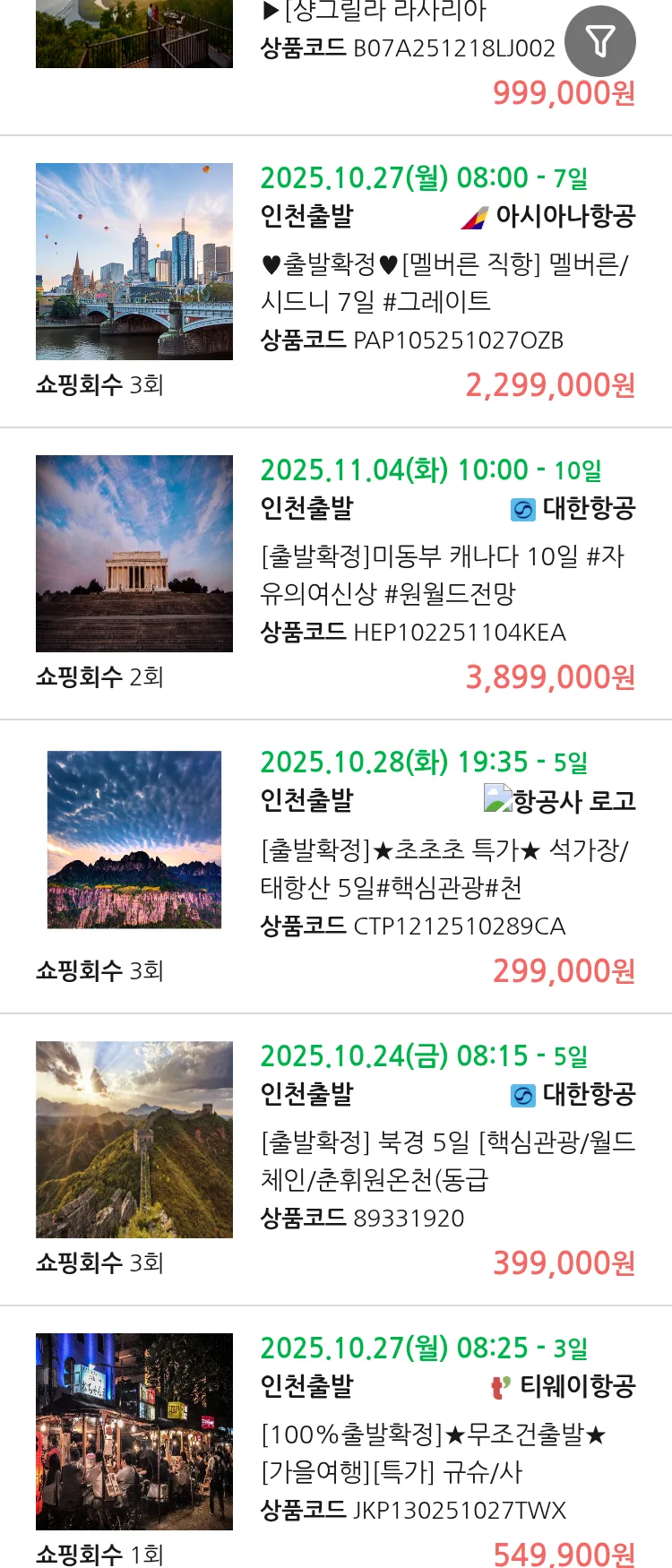 (10월9일(목)) 땡처리 99.9% 확정 패키지