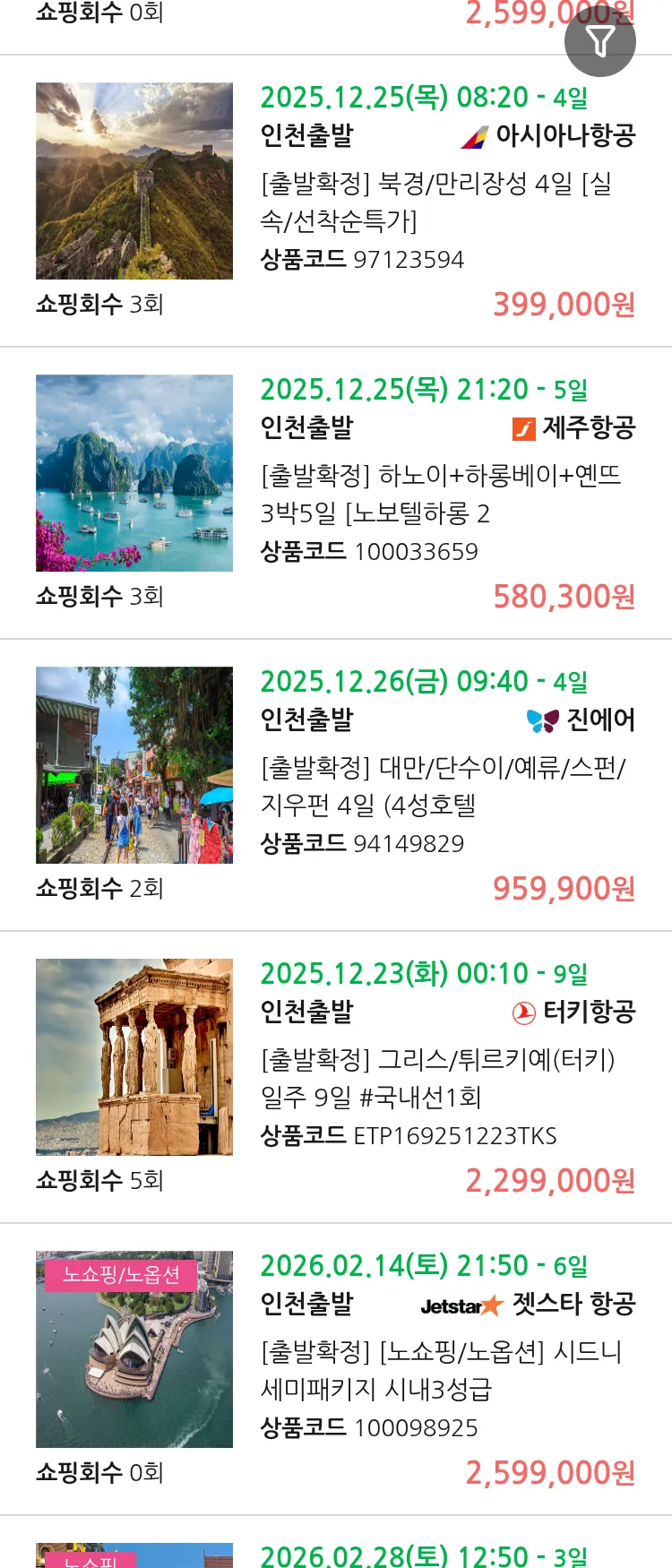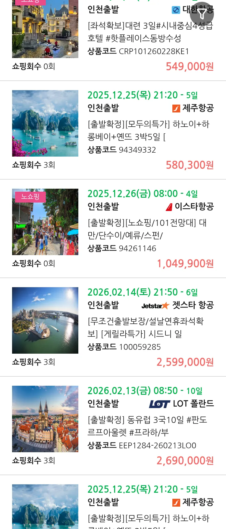 (11월 10일(월)) 땡처리 99.9% 확정 패키지