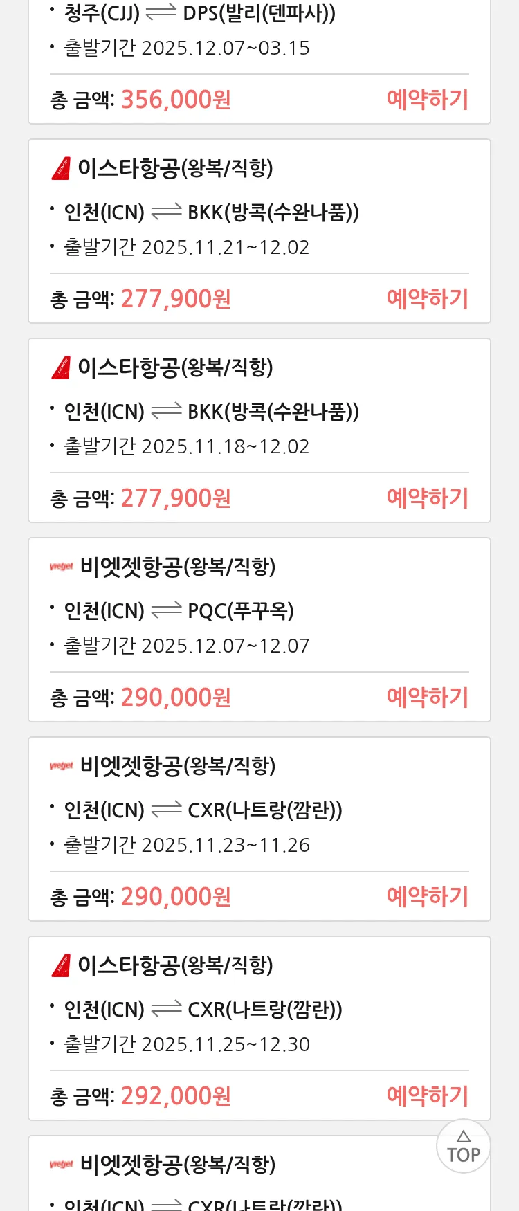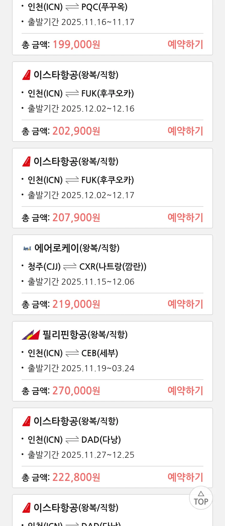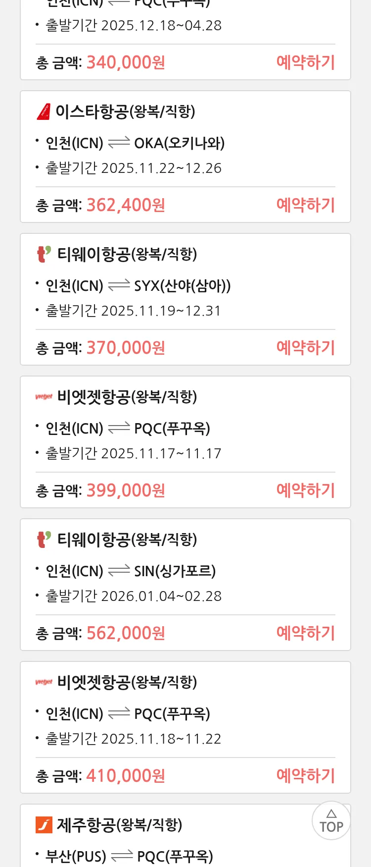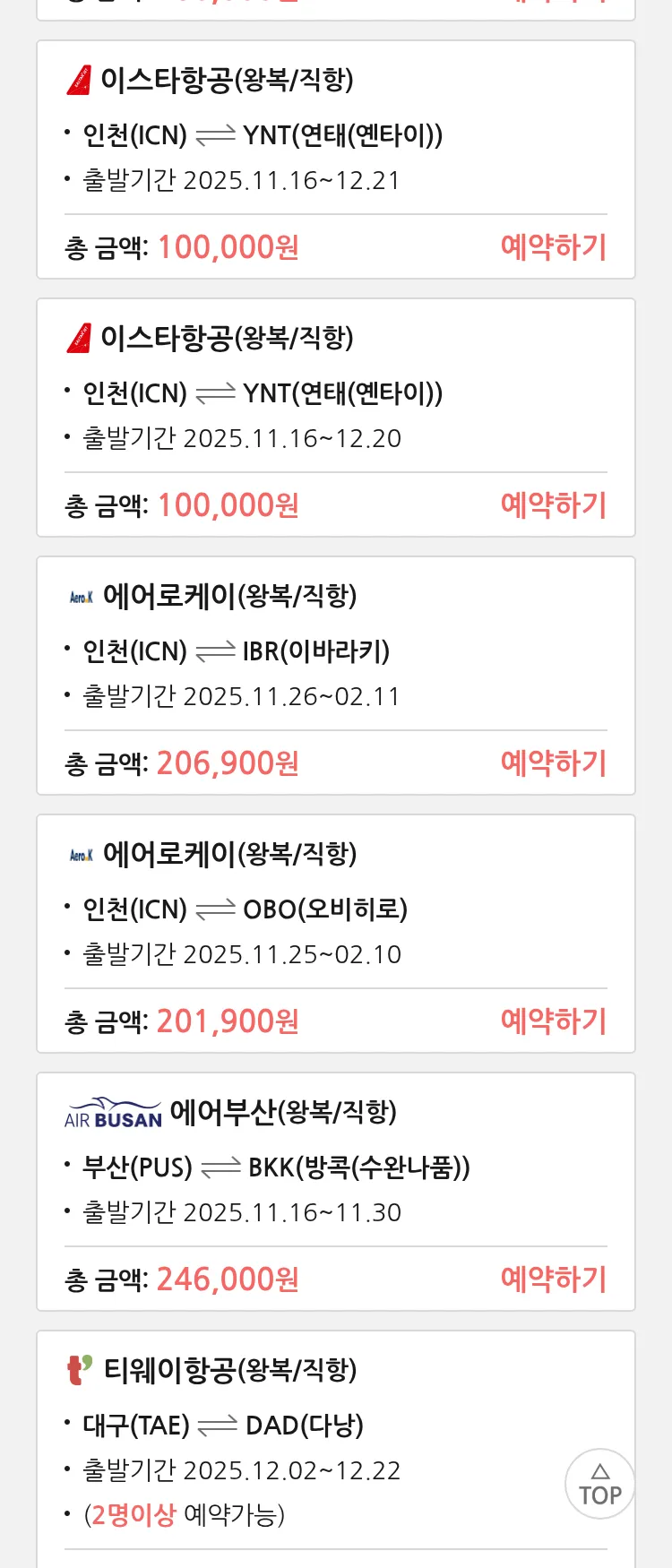 (11월 10일(월)) 땡처리 특가 항공권
