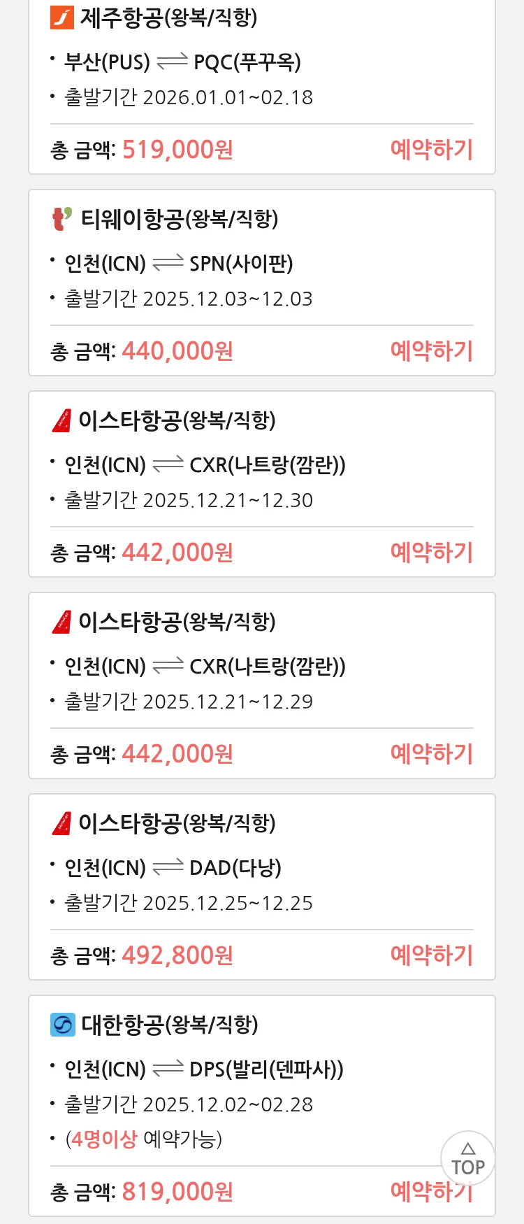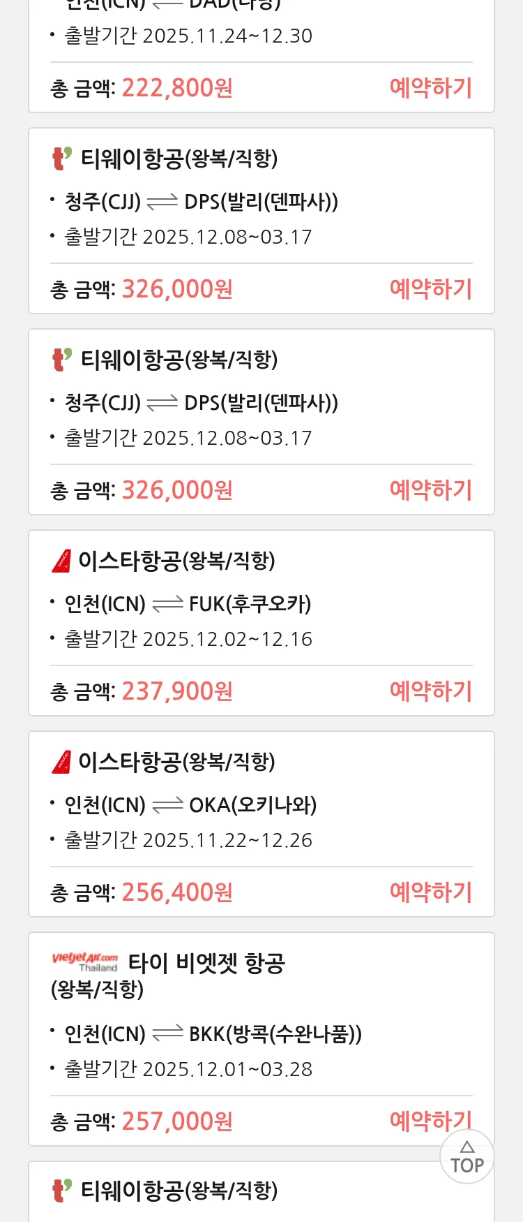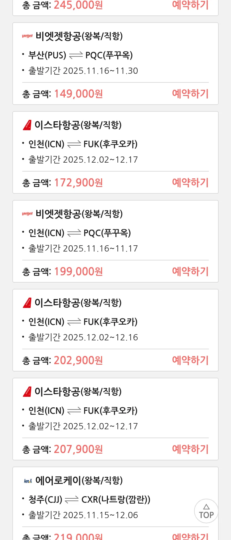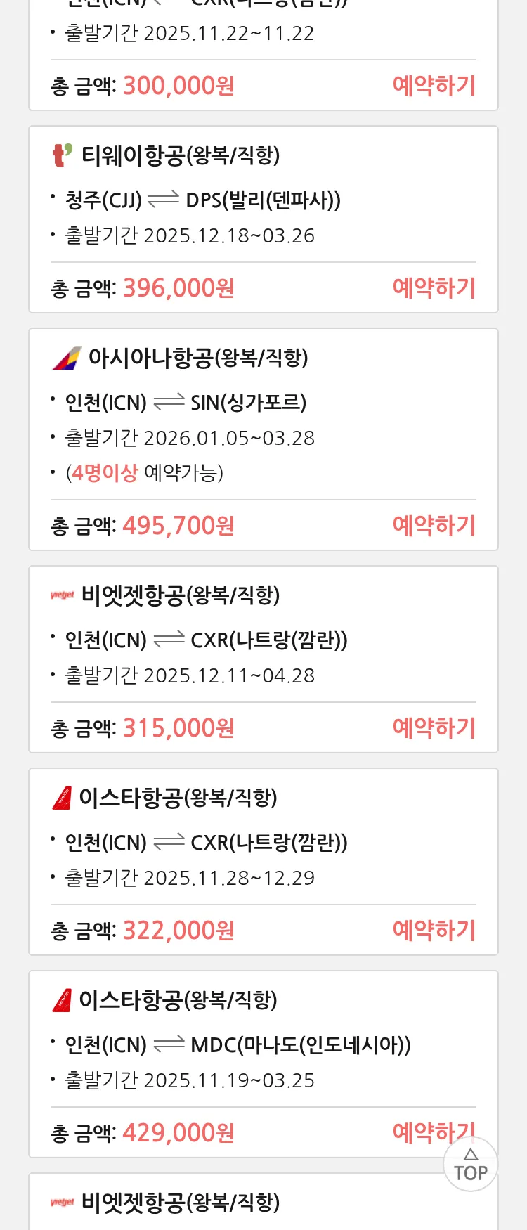 (11월 10일(월)) 땡처리 특가 항공권
