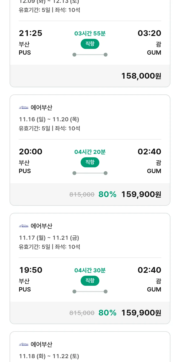 (11월 10일(월)) 땡처리 특가 항공권