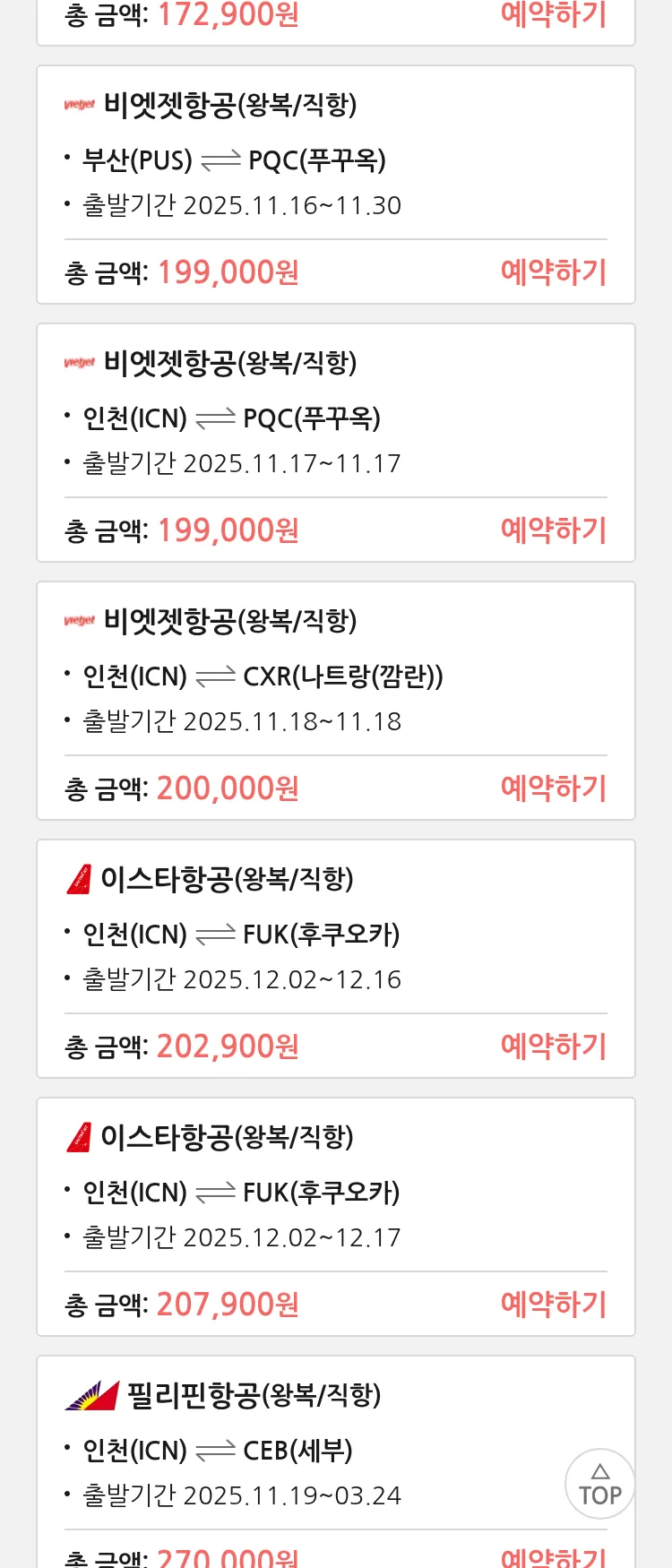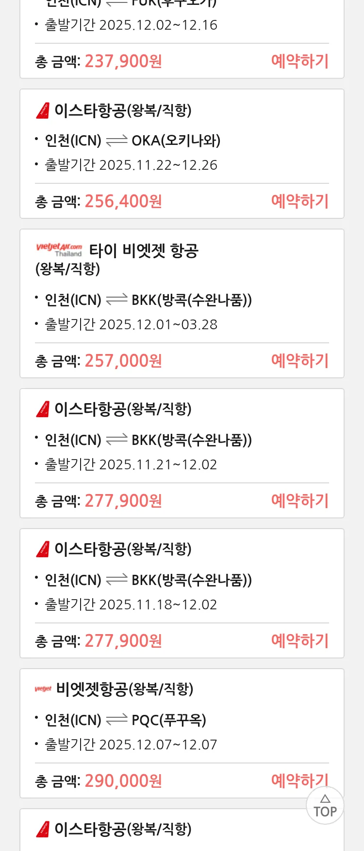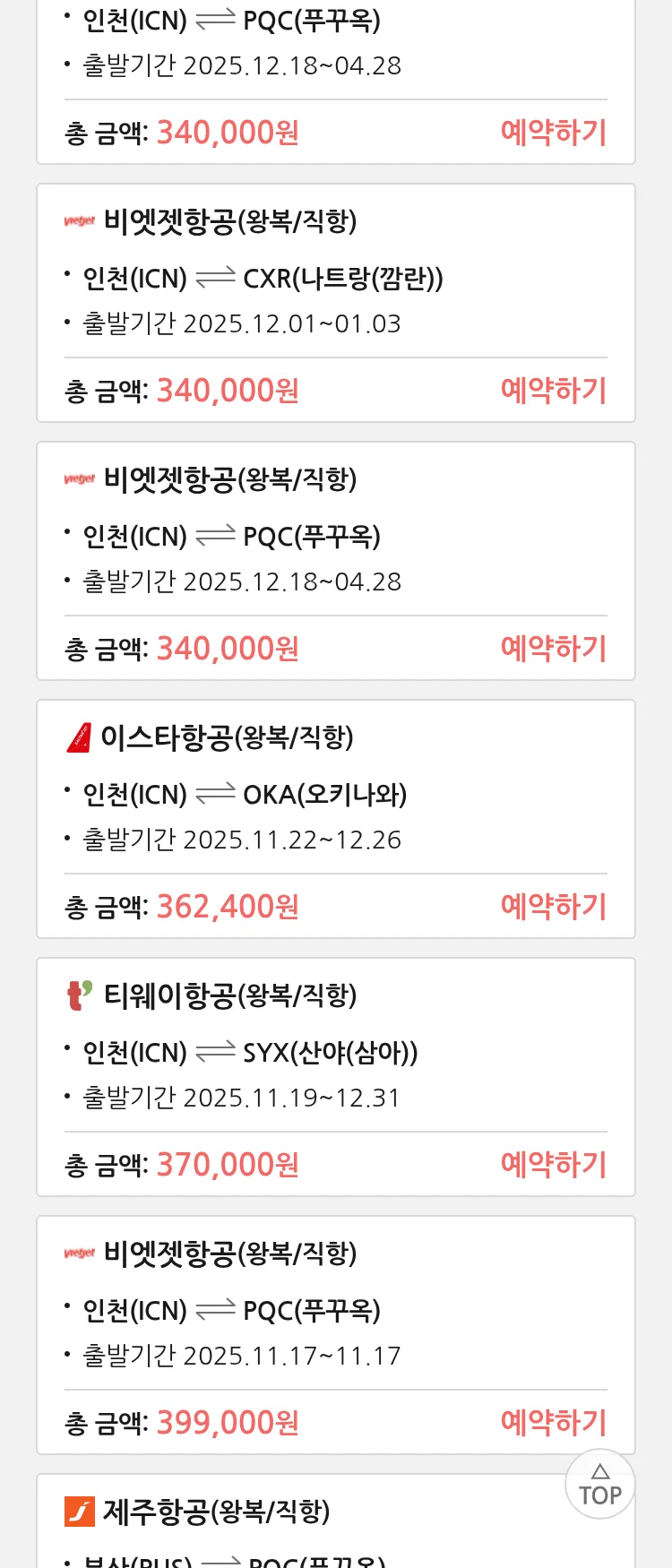 (11월 10일(월)) 모두투어 동남아 특가 항공권