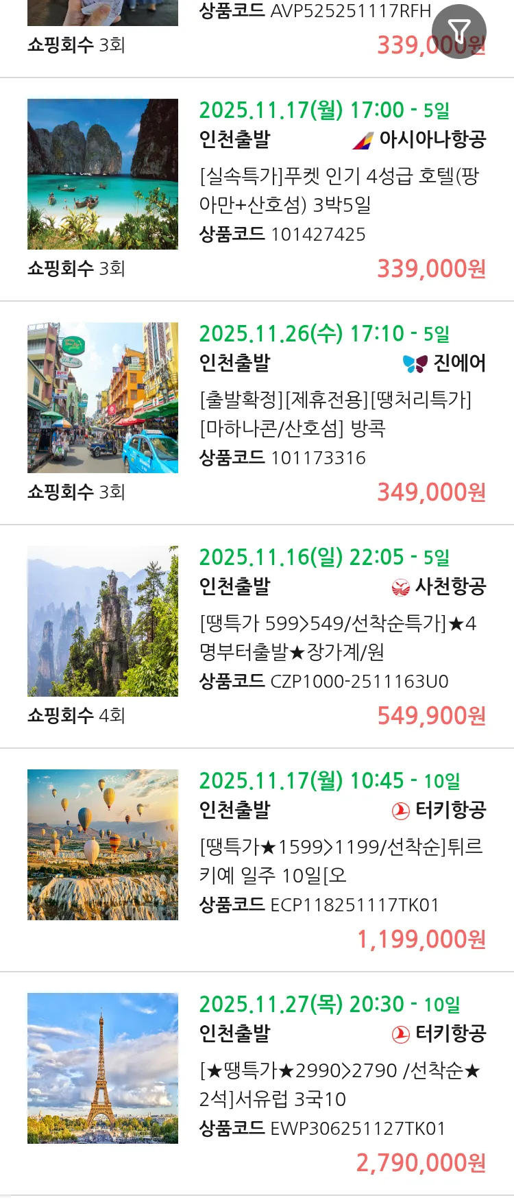 (11월 12일(수)) 땡처리 99.9% 확정 패키지