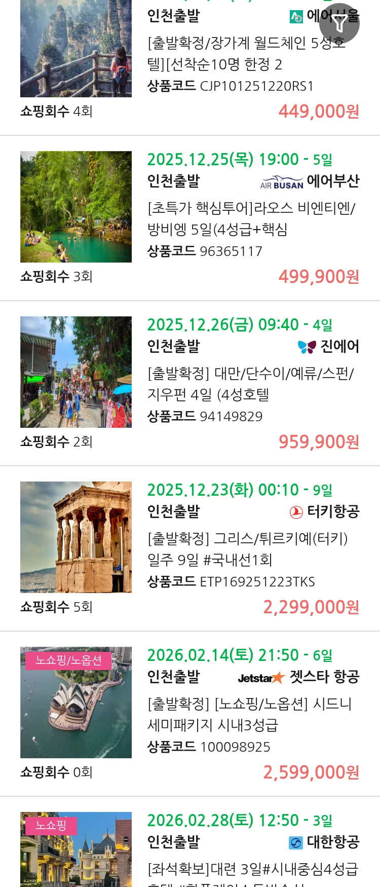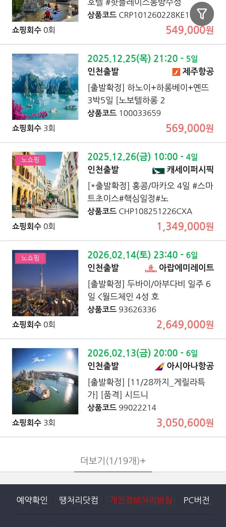 (11월 12일(수)) 땡처리 99.9% 확정 패키지