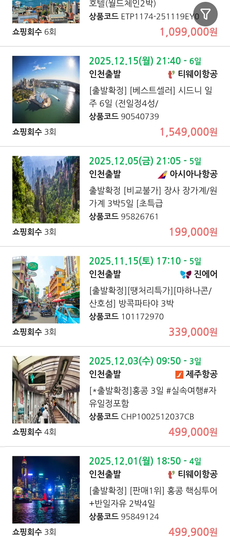 (11월 12일(수)) 땡처리 99.9% 확정 패키지