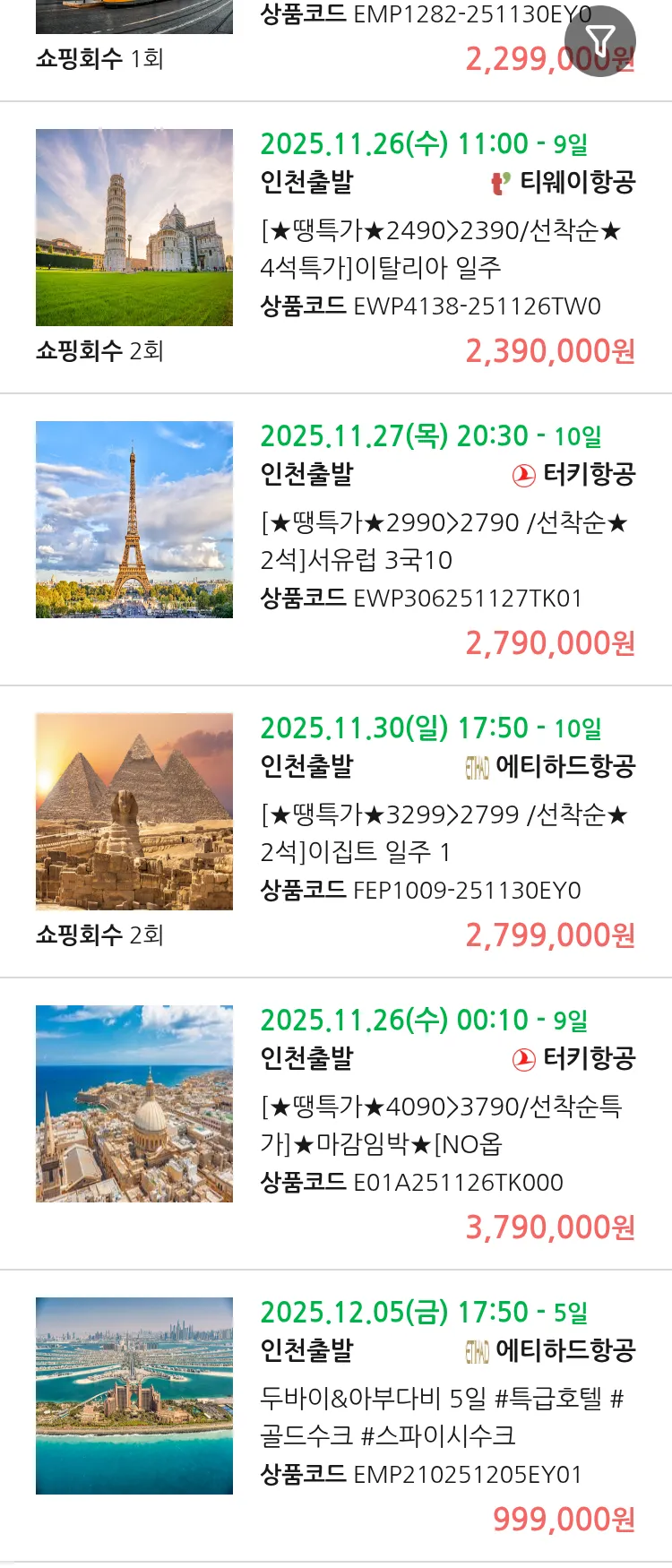 (11월 13일(목)) 땡처리 유럽 긴급 패키지